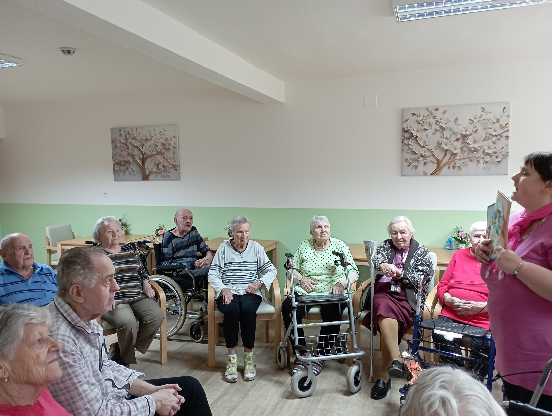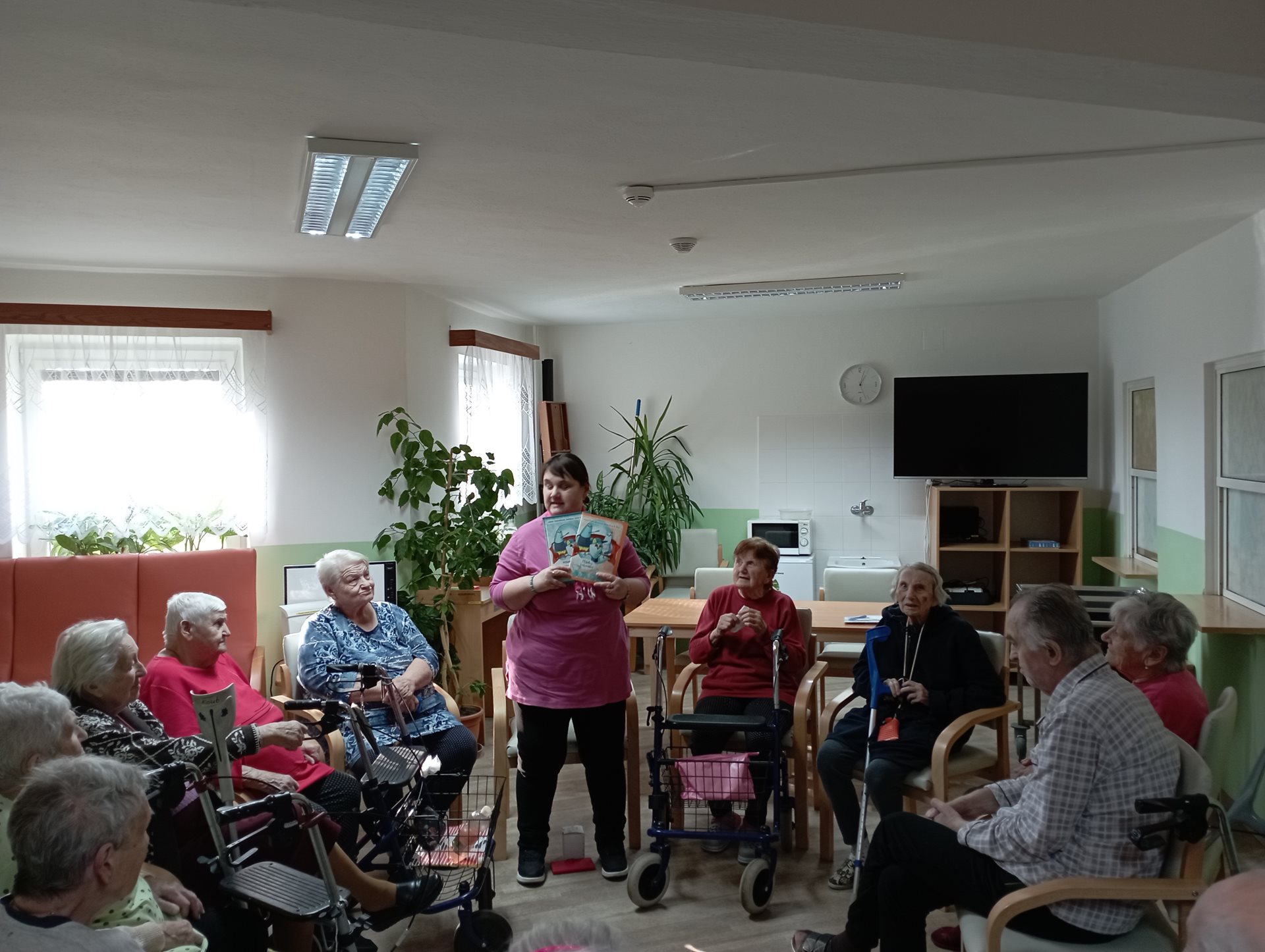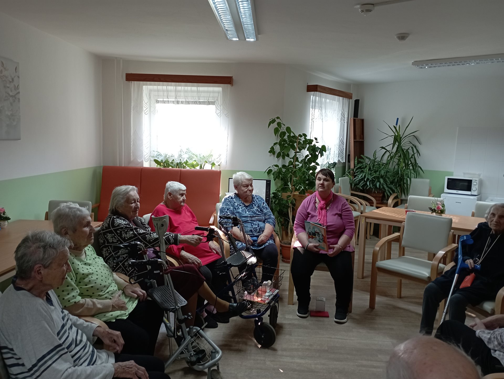 Dnes nás přijela navštívit paní Dohnálková a předčítala nám z knížky Příběhy holoubka Toníčka.