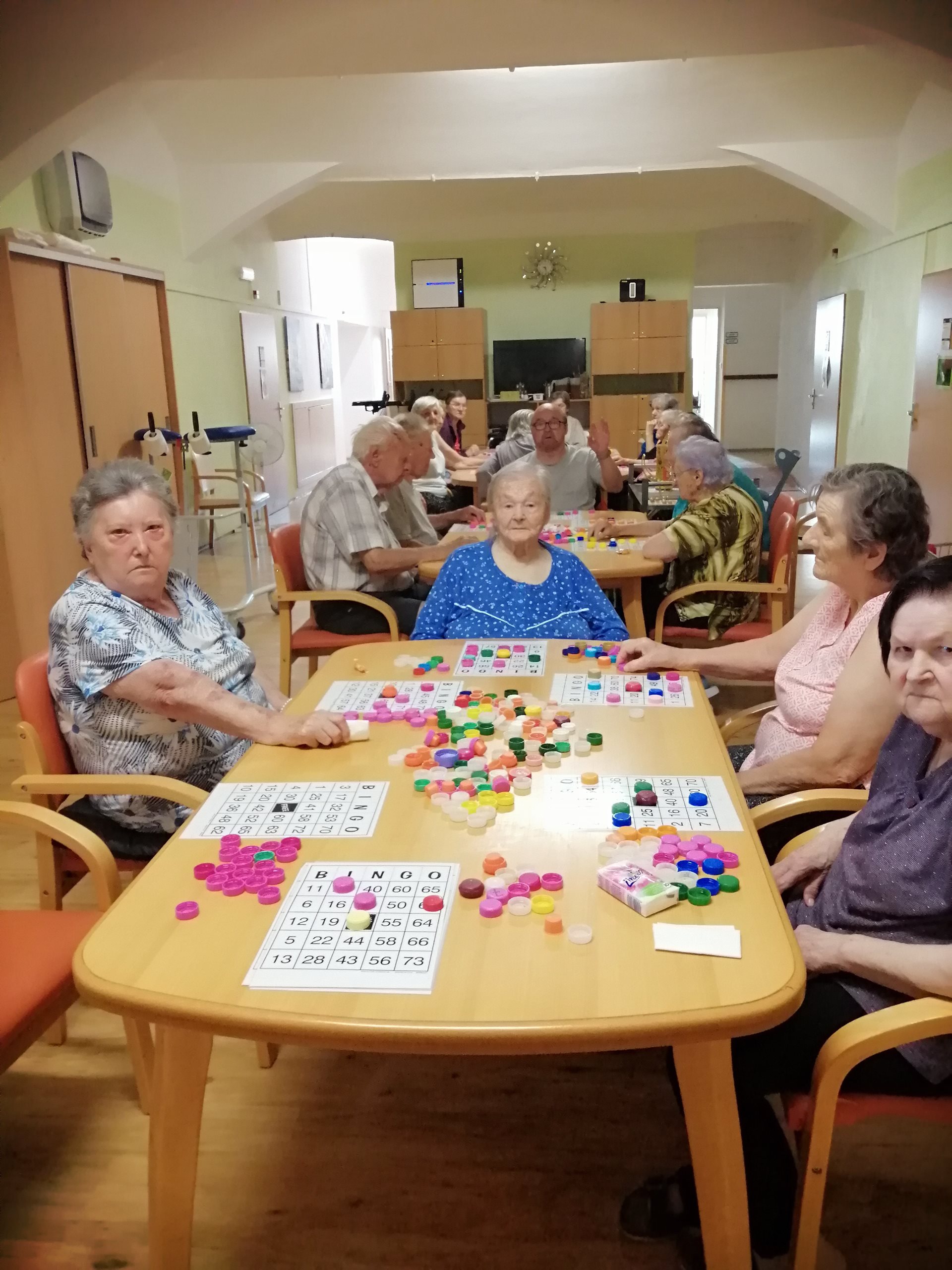Nejoblíbenějším dnem je pátek, protože je Bingo. A kdo jednou u nás zkusil Bingo, většinou mu propadl. Na 1. patře bylo nutné hru přestěhovat do jiných prostor, ale to nikomu nevadí. Tuhle zábavu nic nezkazí.