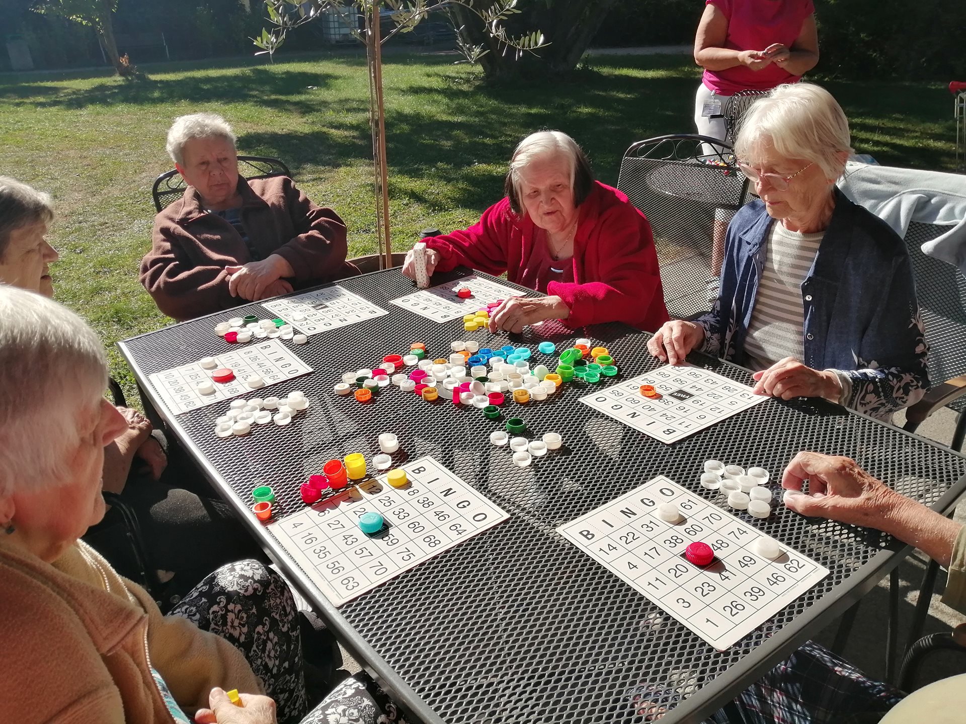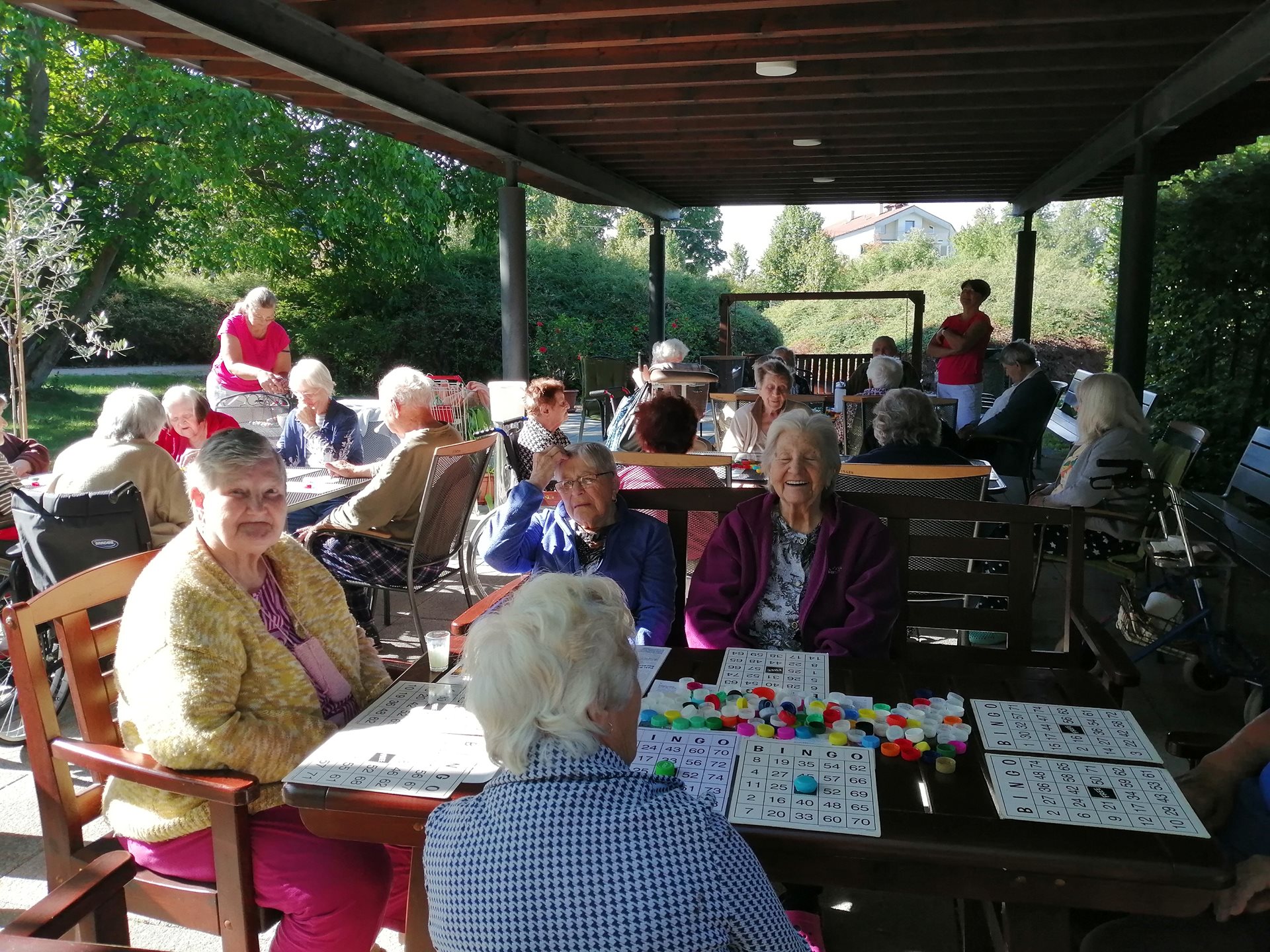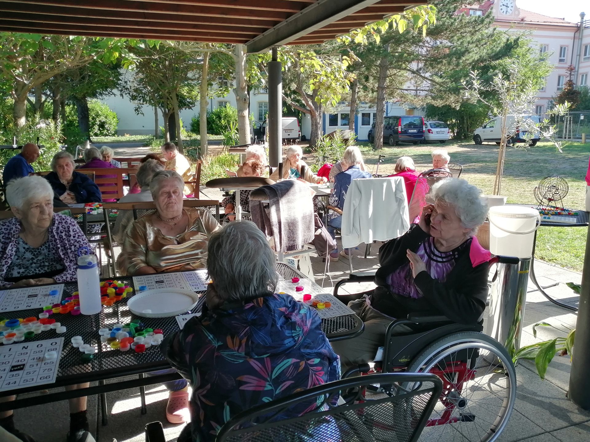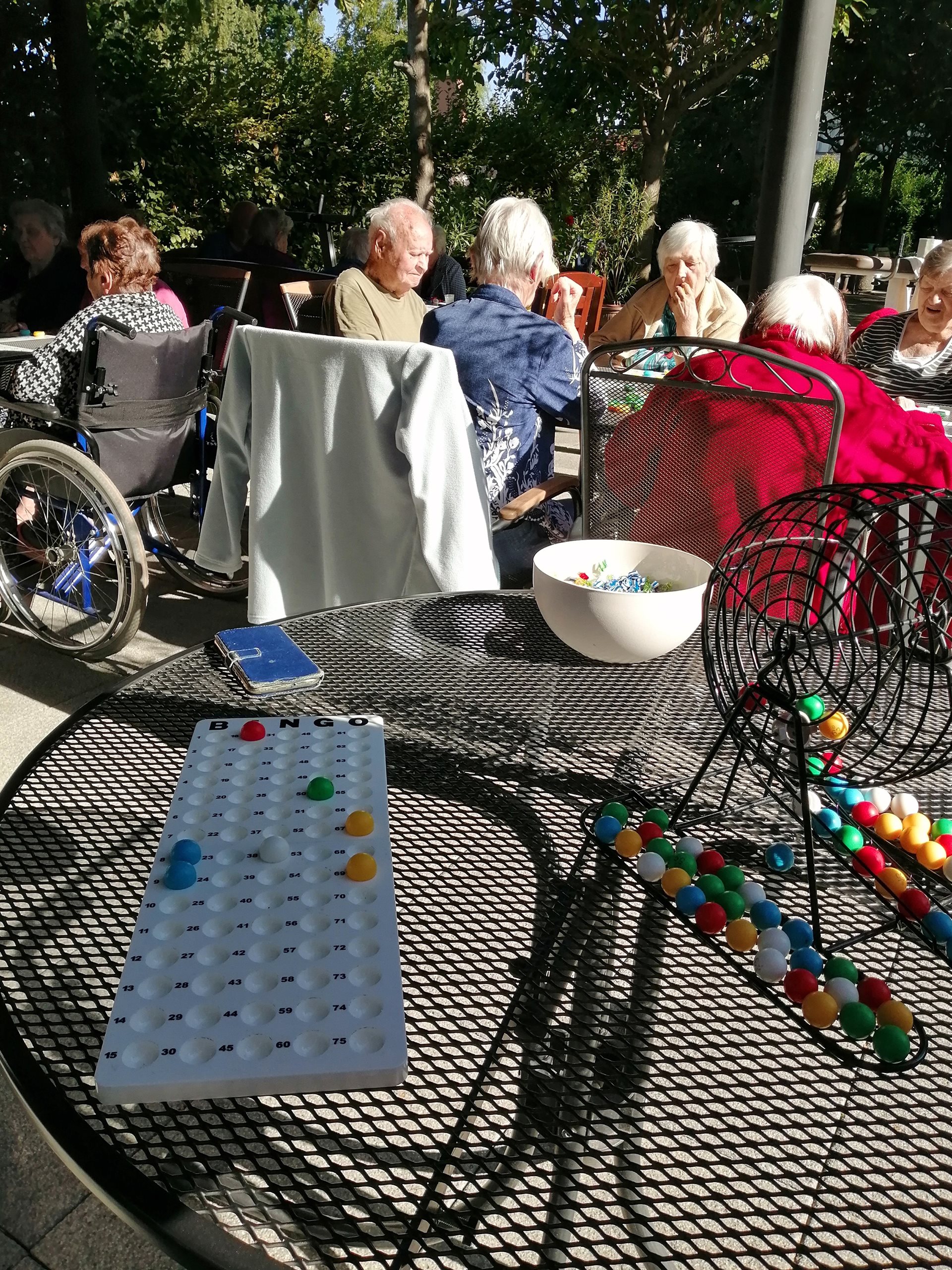 Plánovaný koncert se nakonec neuskutečnil, ale náhradní program se povedl na jedničku. V chladném, avšak slunečném ránu jsme si na zahradě zahráli bingo, do kterého se zapojili klienti obou oddělení. Atmosféra byla pohodová, plná smíchu a dobré nálady – a to je pro nás tou nejlepší odměnou.