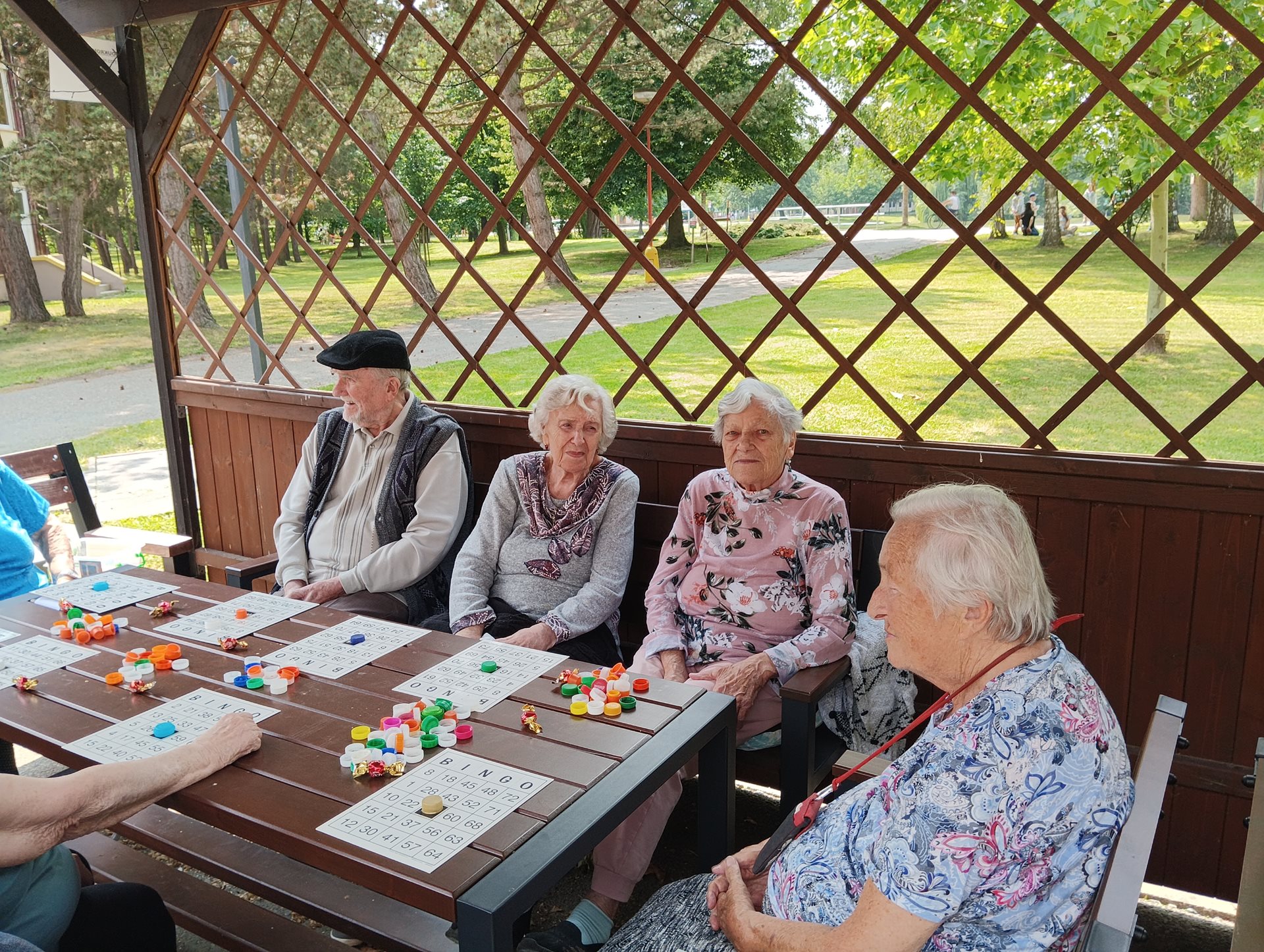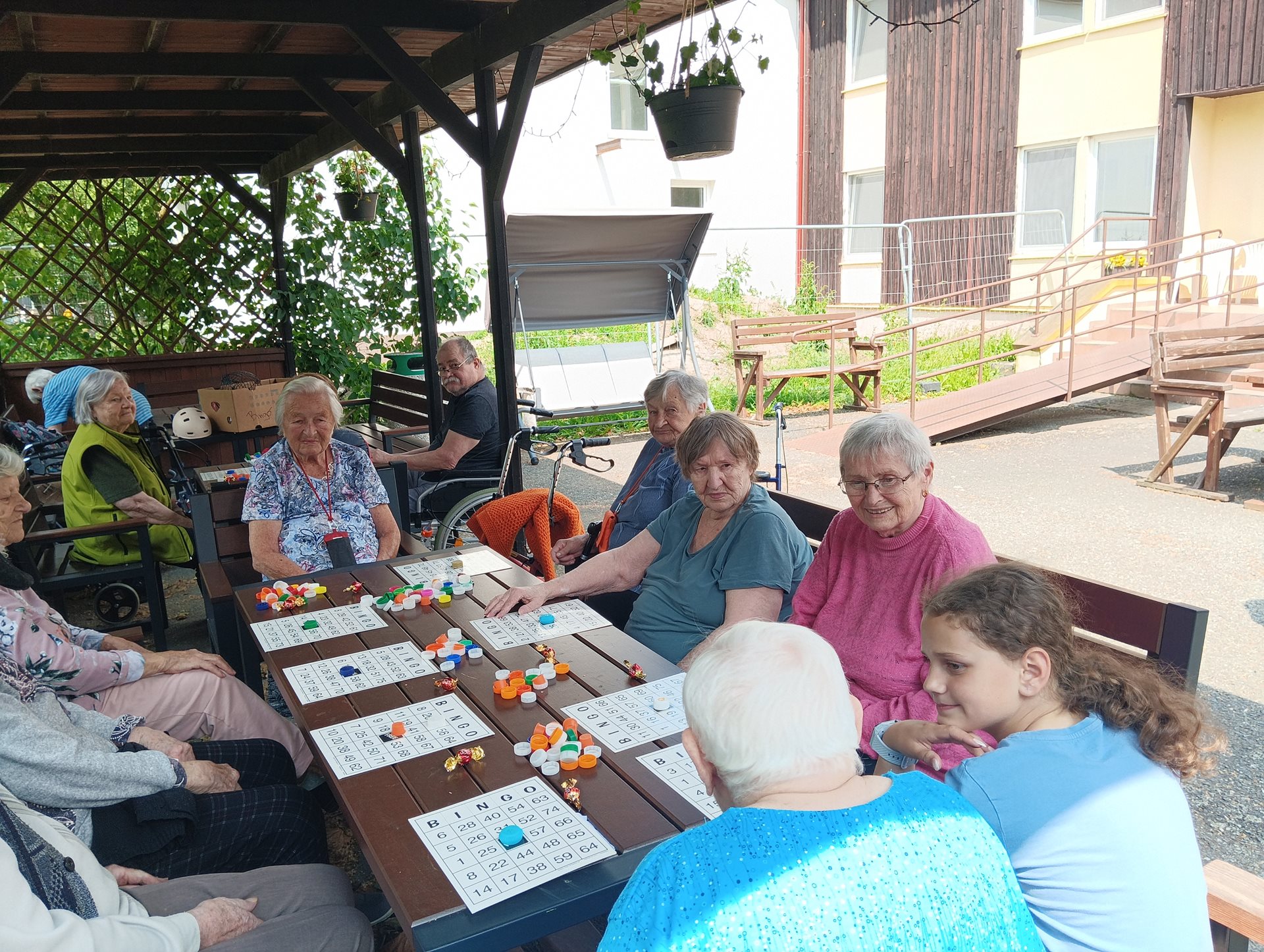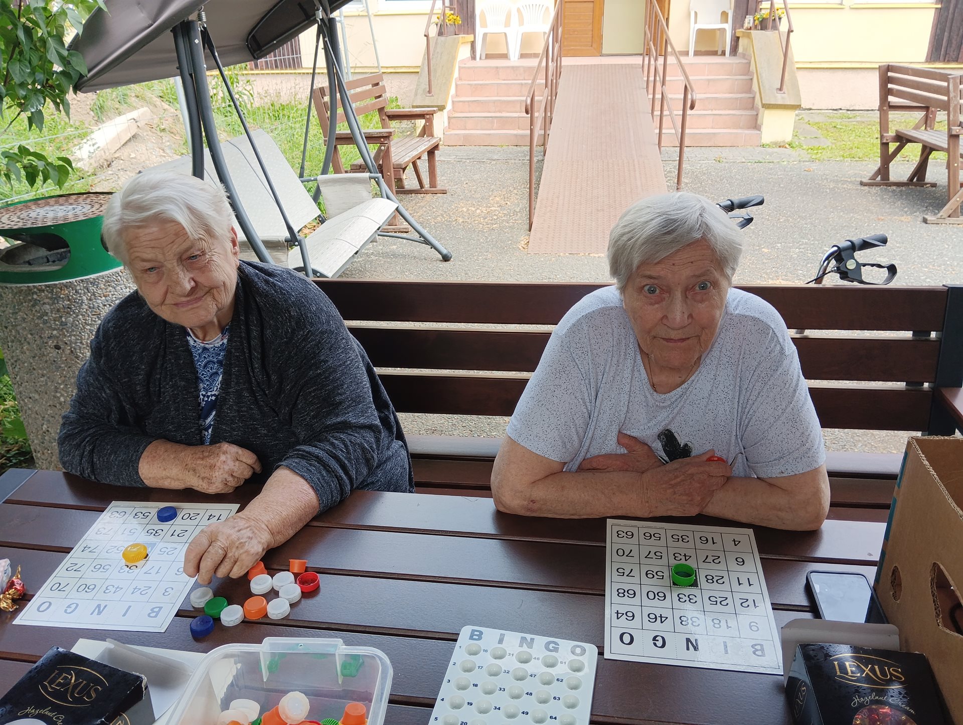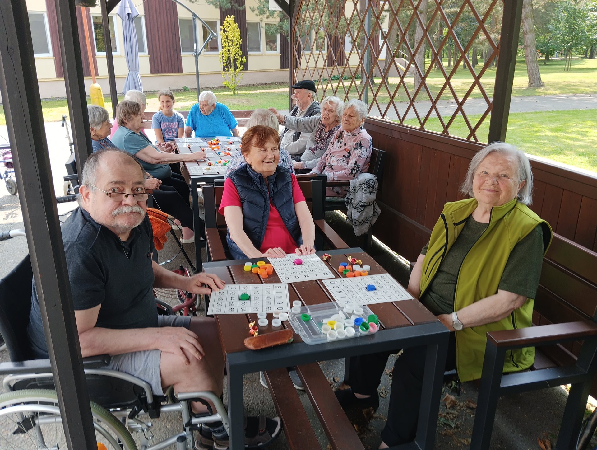 Bingo na čerstvém vzduchu je pro naše klientky a klienty oblíbenou a veselou aktivitou. Spojení zábavné hry s pobytem venku přináší nejen radost, ale i příjemné uvolnění a možnost setkat se s ostatními v neformální atmosféře. Slunečné počasí, smích a napětí při losování čísel vytvářejí pohodovou náladu, která zpříjemňuje den všem zúčastněným.