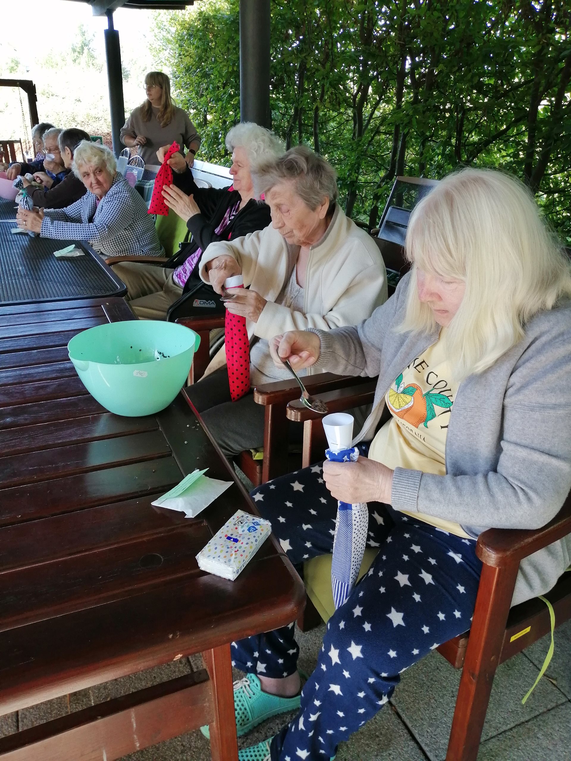 Na závěr si každá z dam vyrobila svůj vlastní pohankový polštářek, který si mohla odnést domů. Společně strávený čas byl příjemný, tvořivý a plný úsměvů – a všechny účastnice odcházely spokojené. 🌸