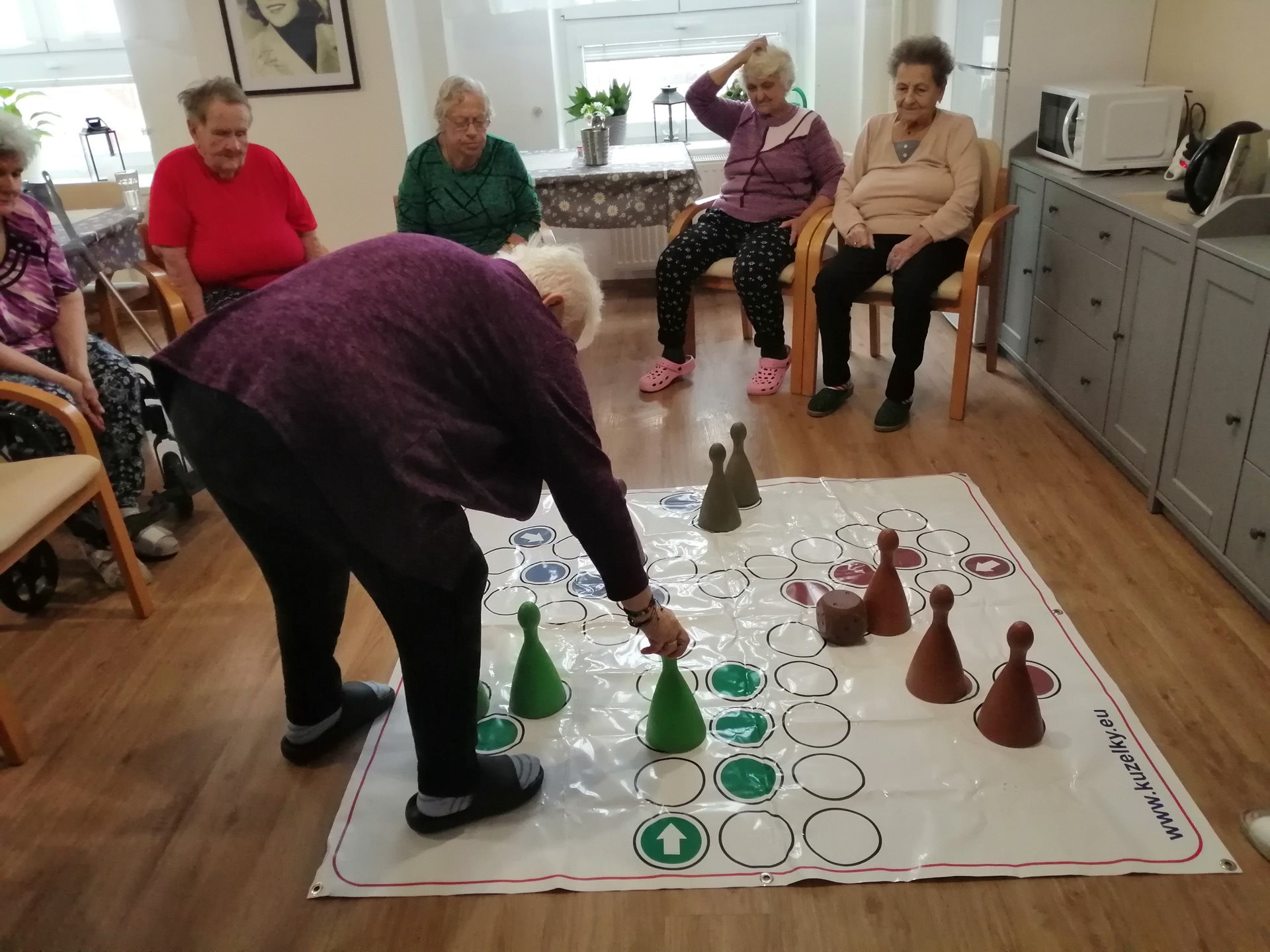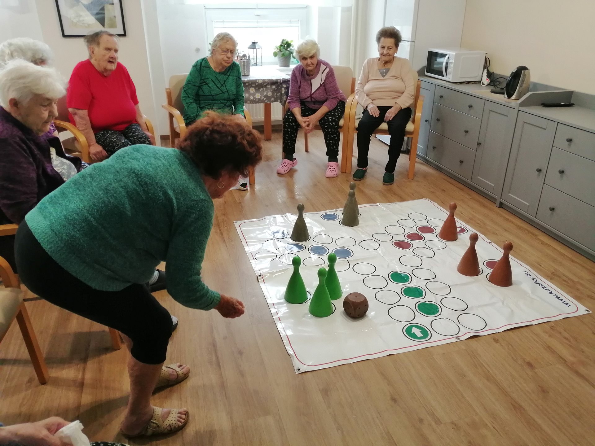 Společně si zahráli oblíbenou hru Člověče, nezlob se, tentokrát proti aktivizačním pracovnicím.