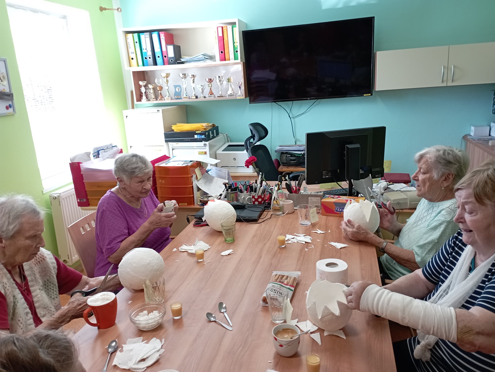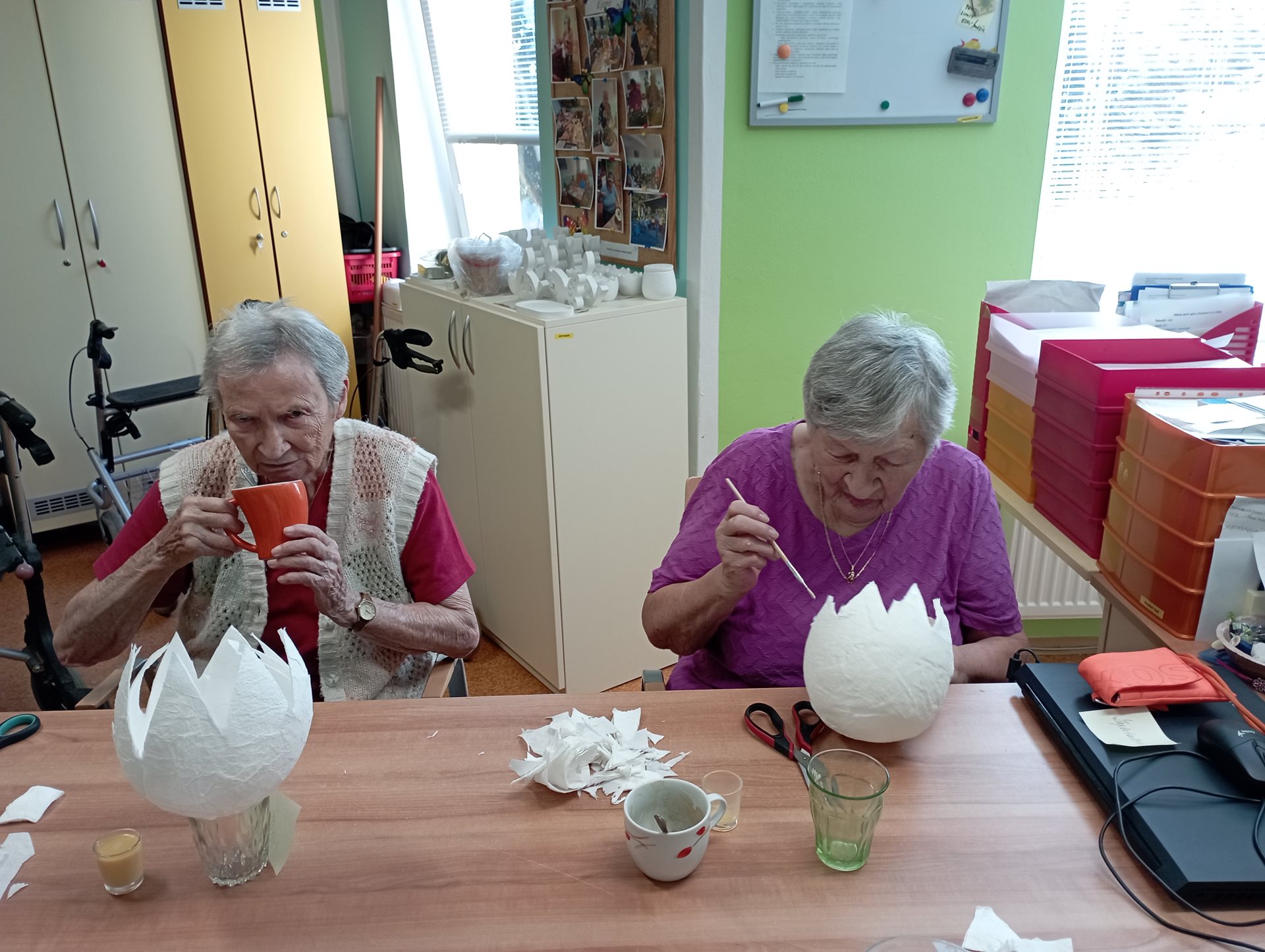 Vyrábění skořápek z toaletního papíru a výzdoba zařízení.