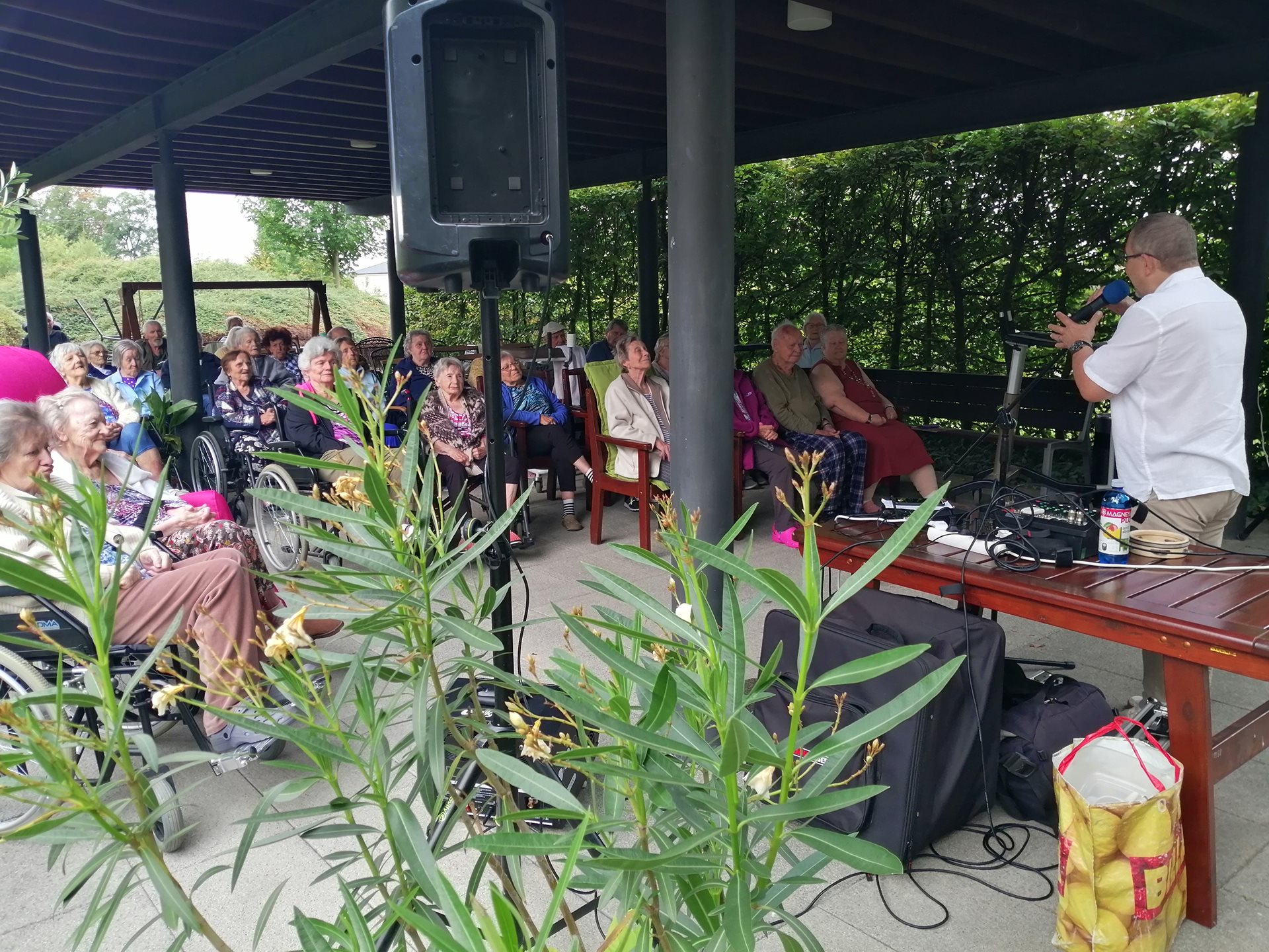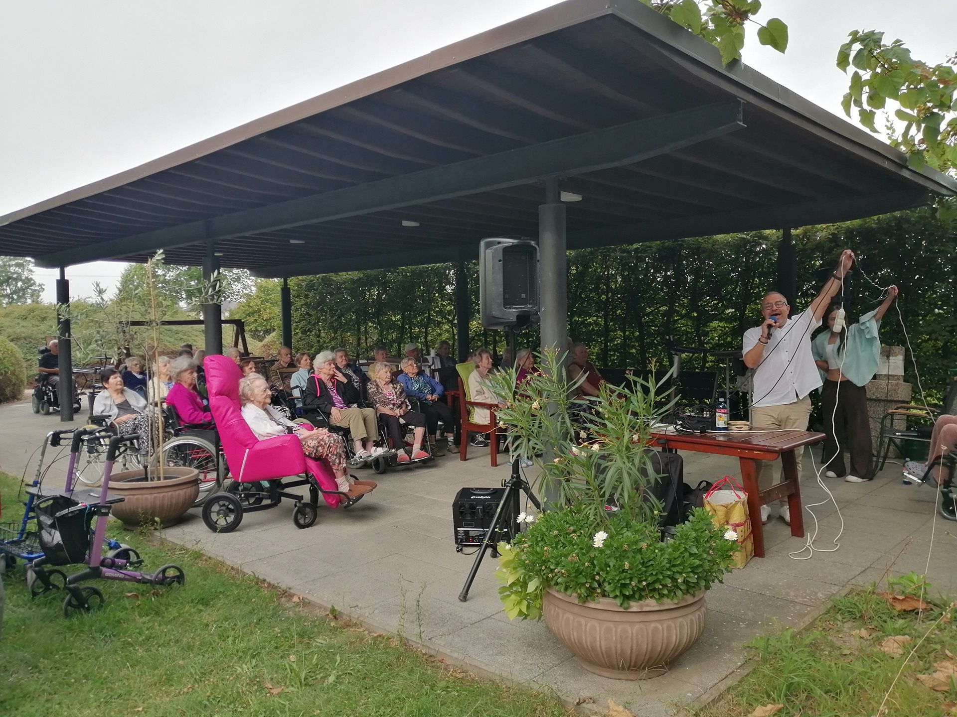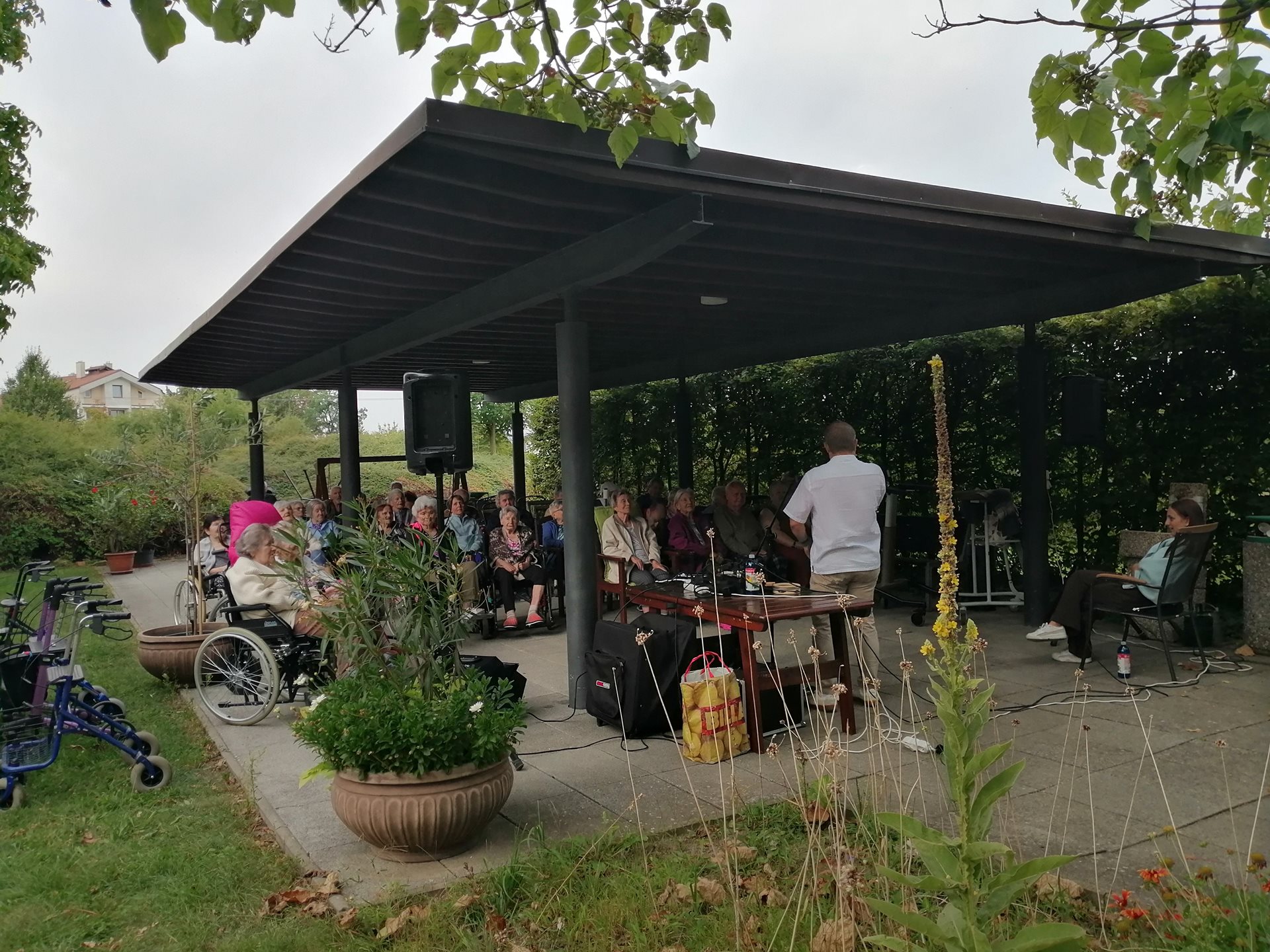 Dnes se v naší zahradě uskutečnil koncert hudebního uskupení pana Martina Krulicha – Živá huba. Akce proběhla za příznivého počasí a přilákala hojnou účast návštěvníků.