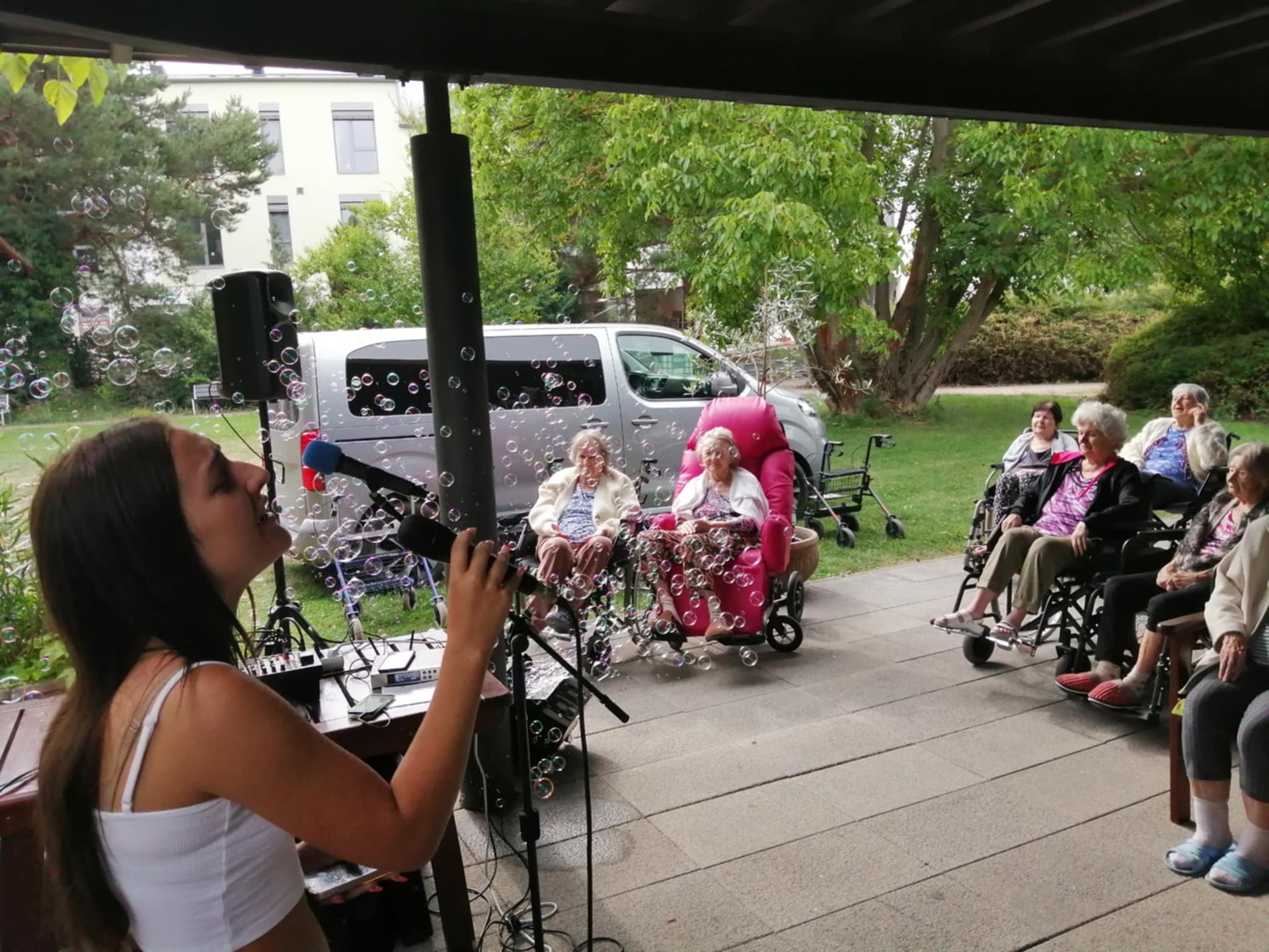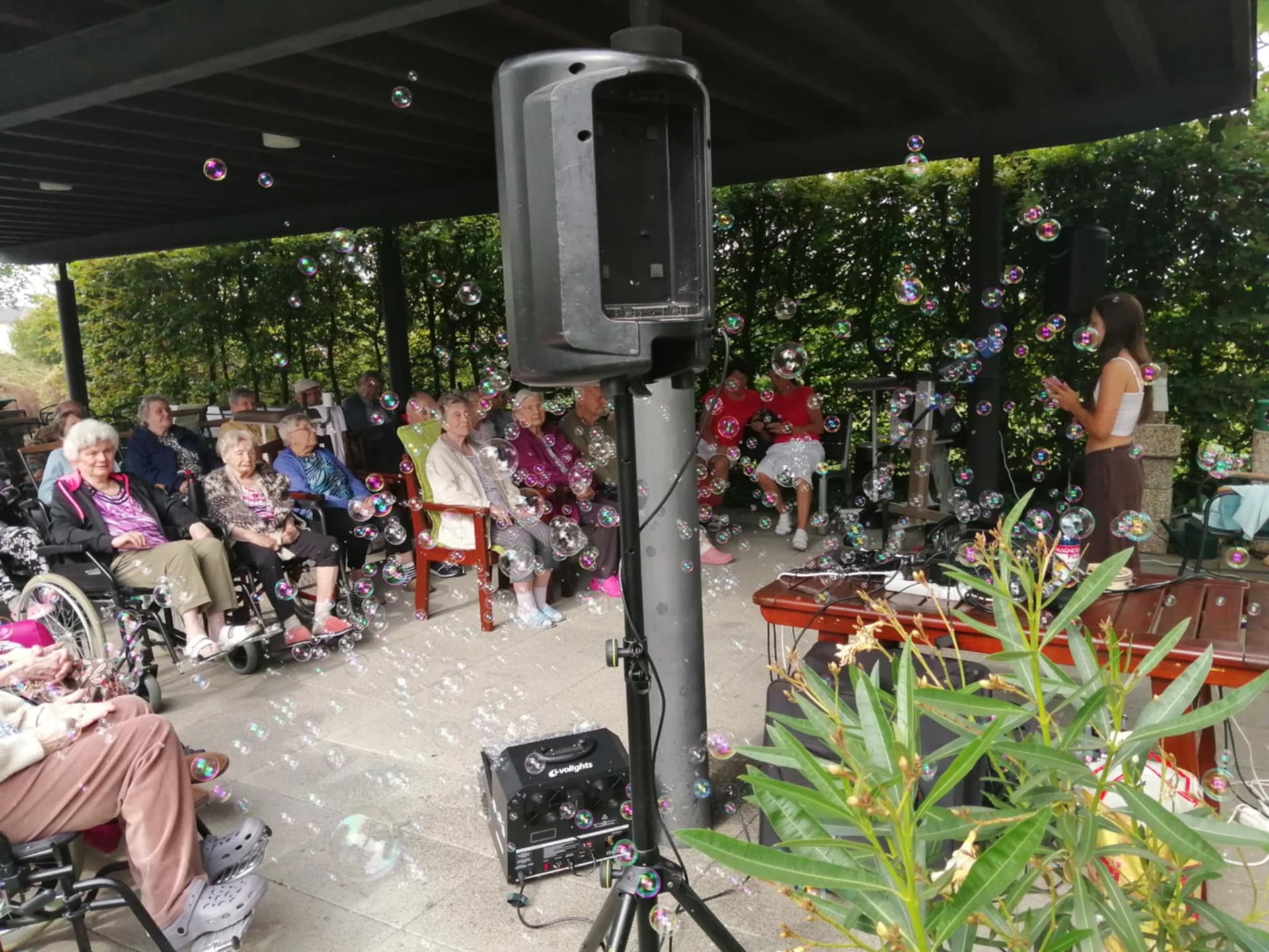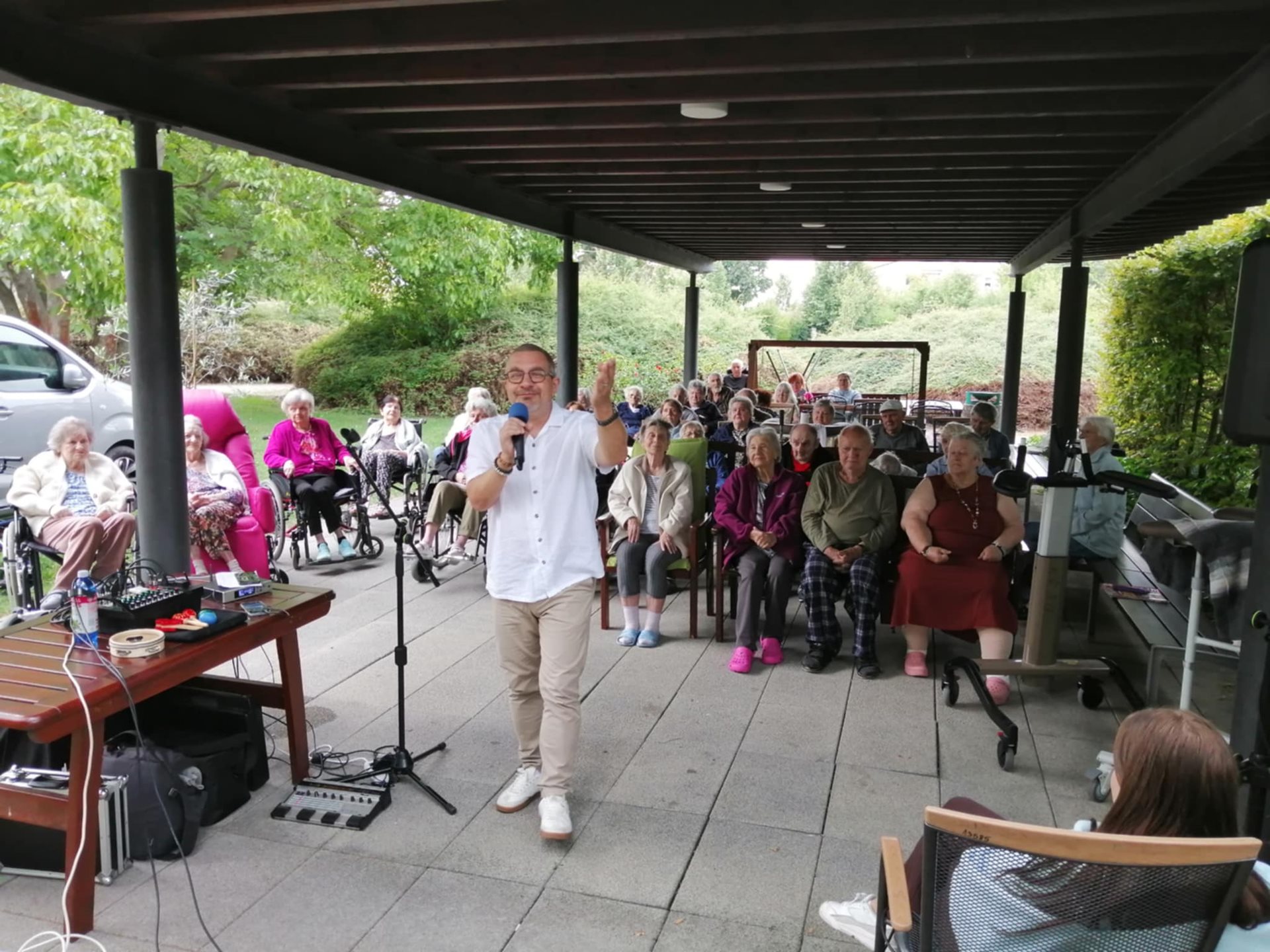Dnes se v naší zahradě uskutečnil koncert hudebního uskupení pana Martina Krulicha – Živá huba. Akce proběhla za příznivého počasí a přilákala hojnou účast návštěvníků.