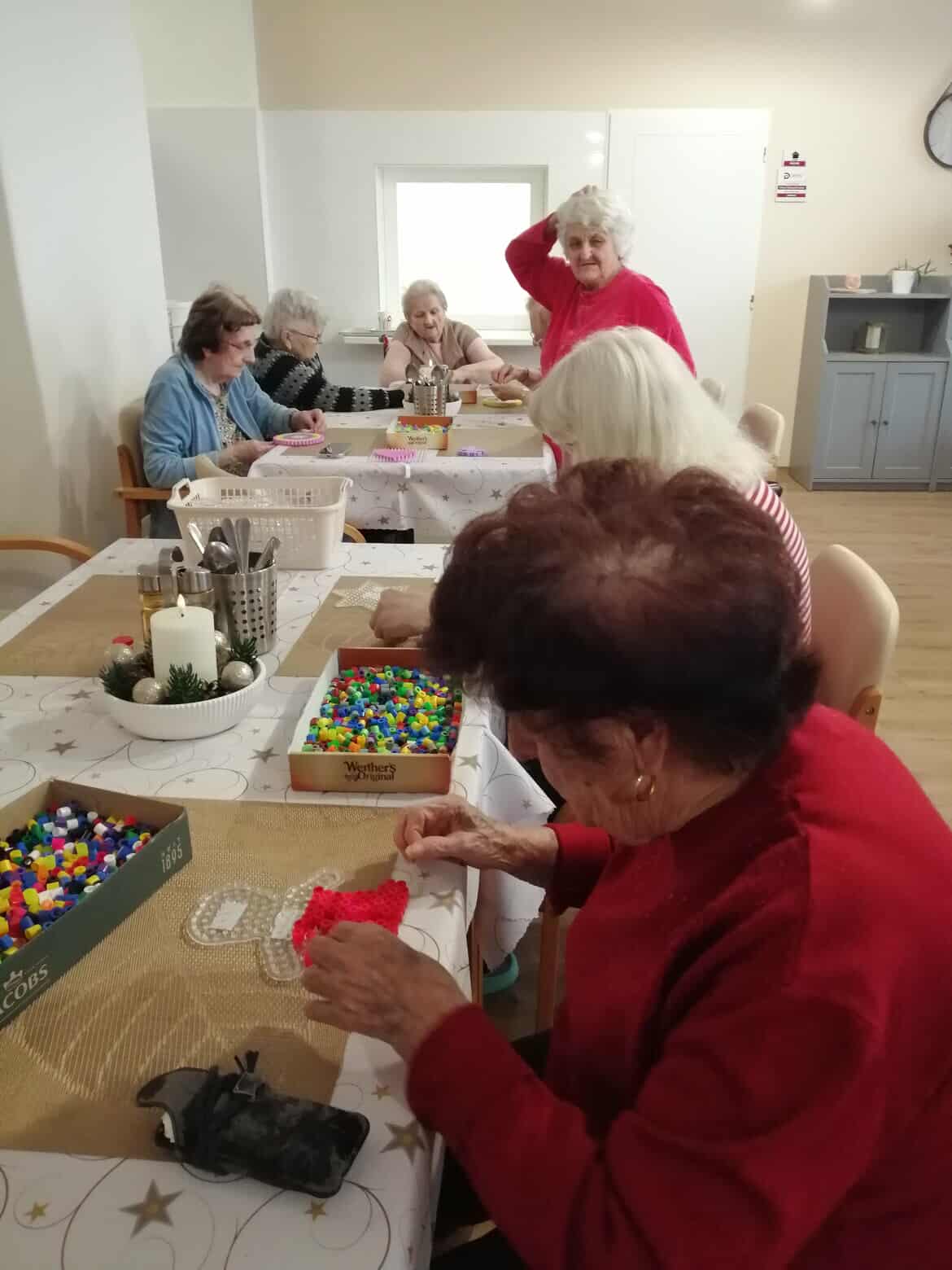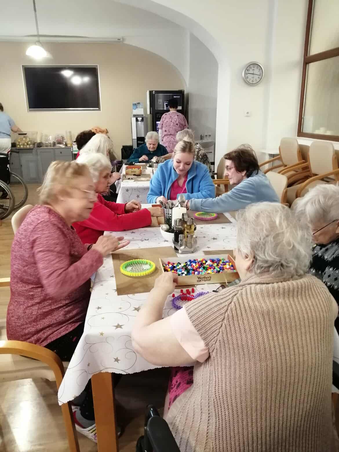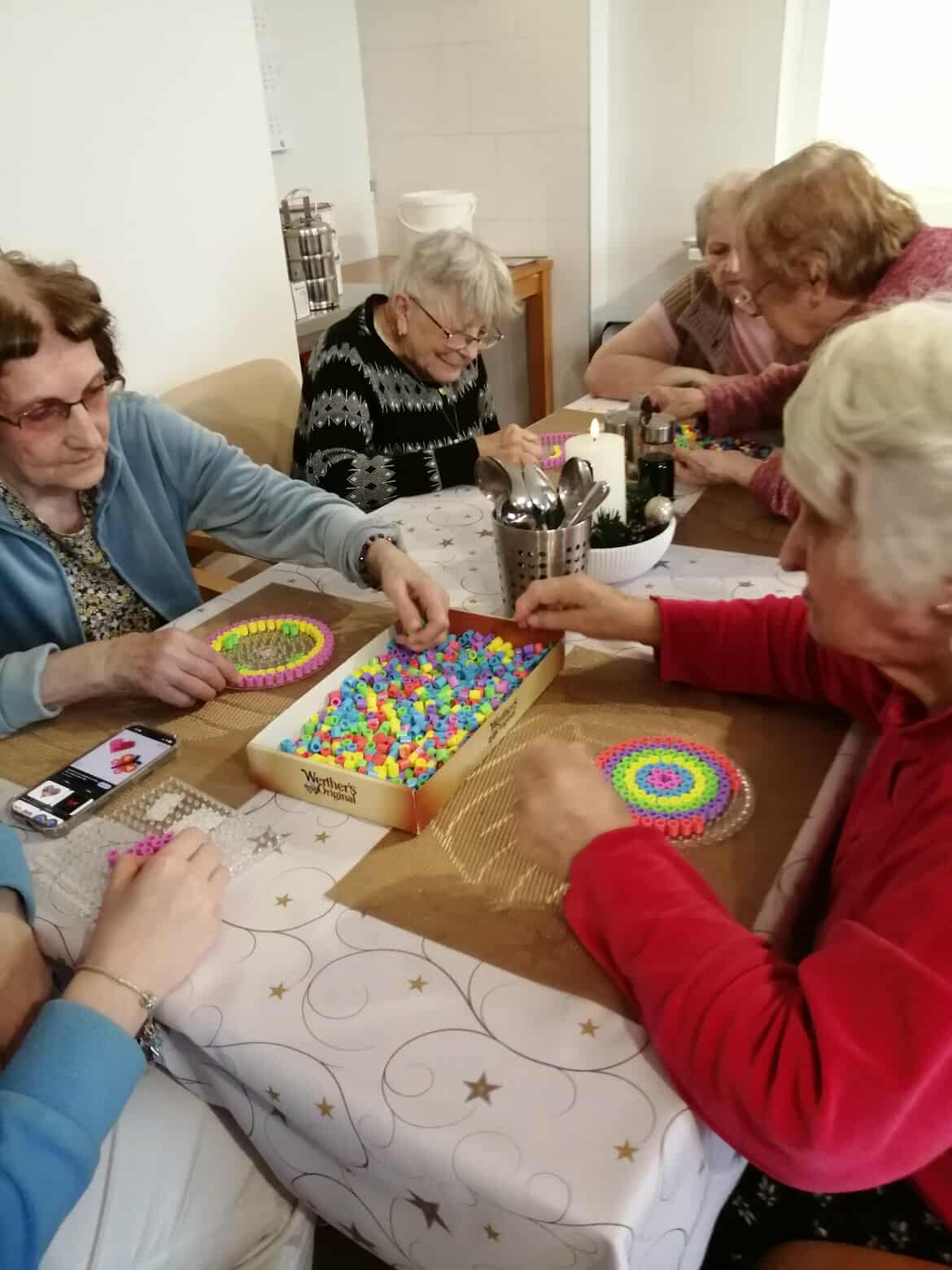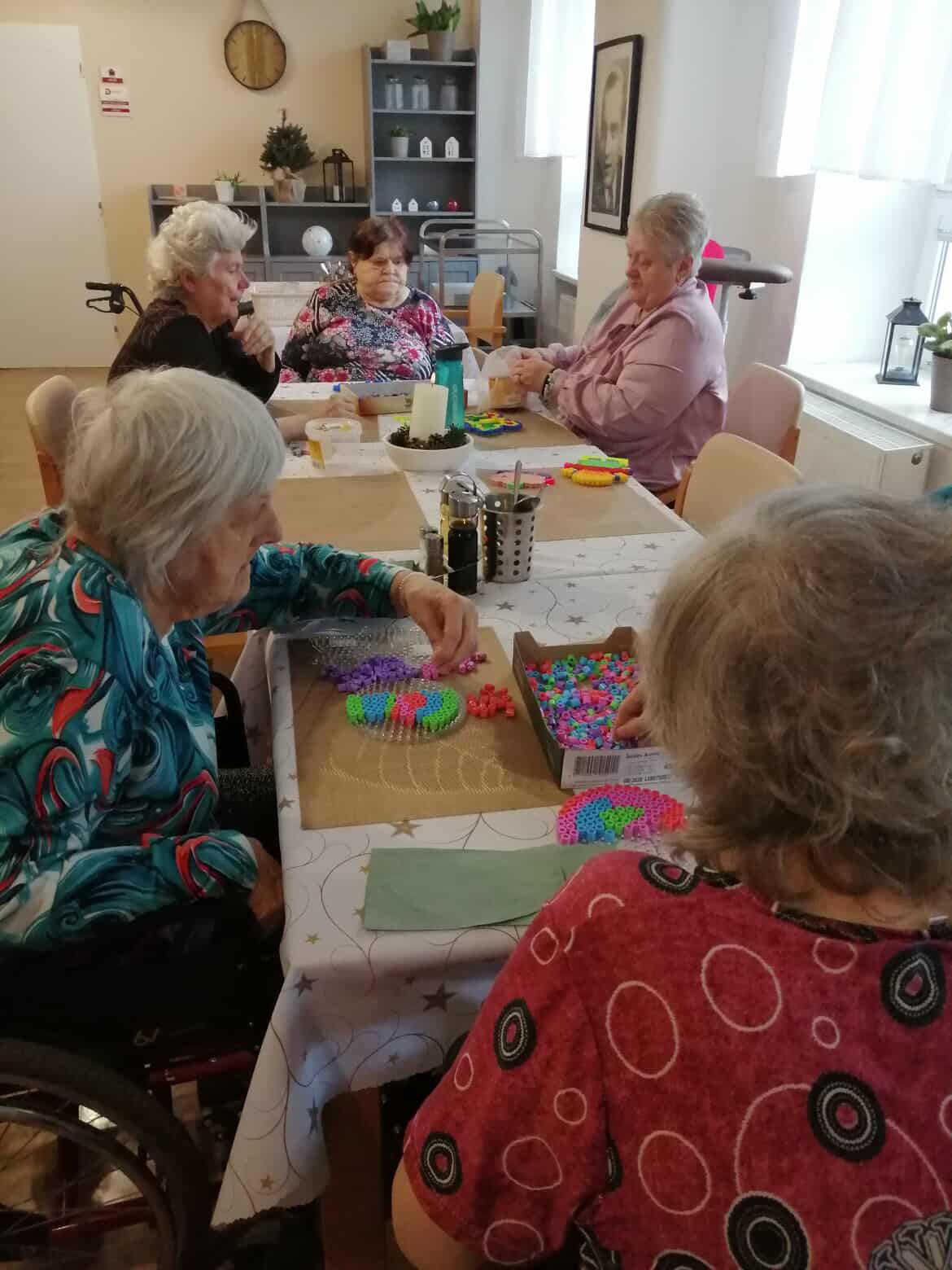 Jedno dopoledne patřilo korálkování se zažehlovacími korálky, které přineslo klidnou a velmi příjemnou atmosféru. Dámy se sešly u tvoření a s chutí se pustily do práce.
