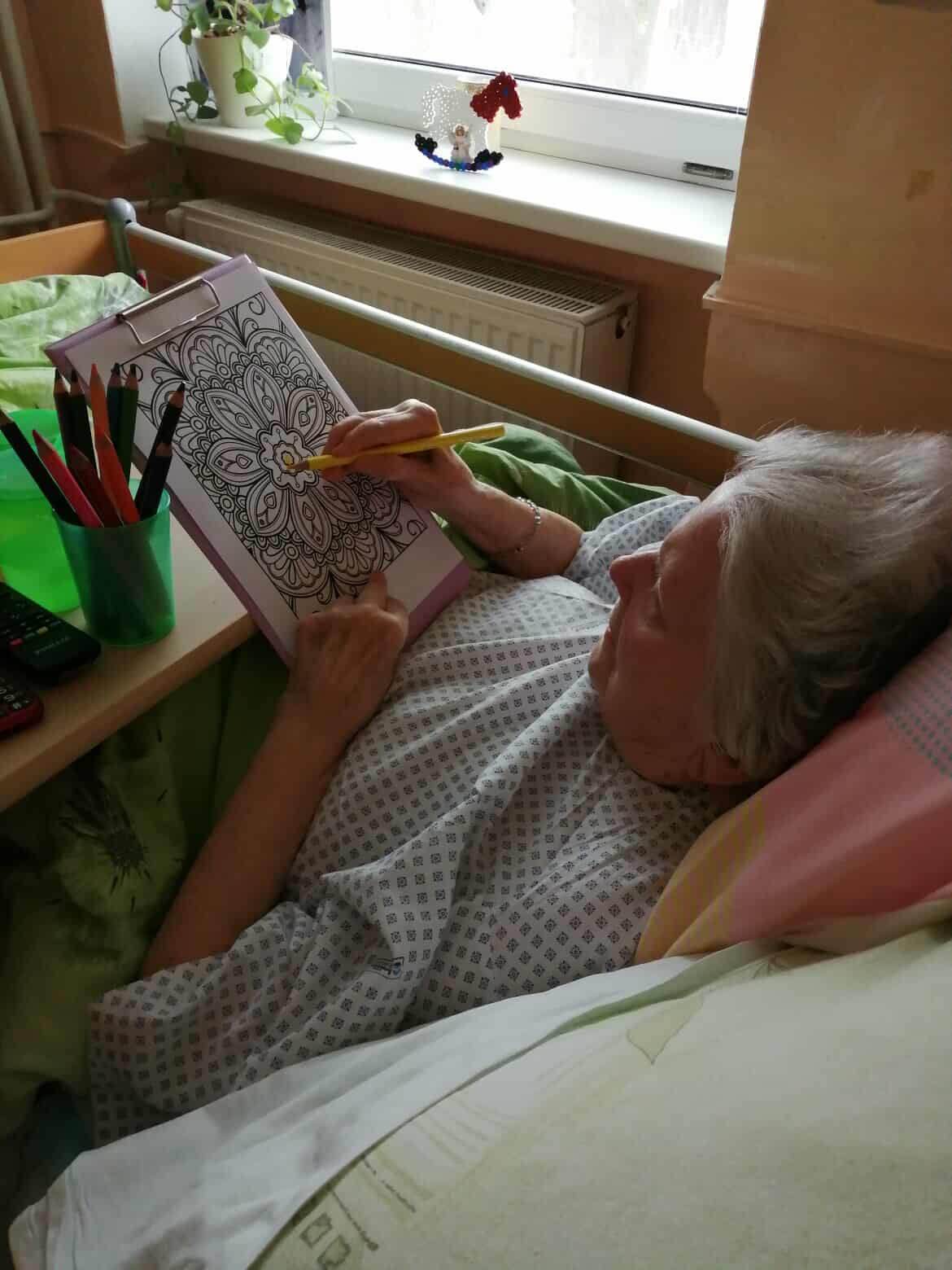 Jednou z oblíbených činností jsou antistresové omalovánky. Pomáhají k uvolnění a klidnému trávení času a výsledkem bývá krásný obrázek, který si klientky mohou vystavit ve svém pokoji nebo se jím pochlubit rodině. Takový výtvor je pak nejen dekorací, ale i zdrojem radosti z vlastní práce.