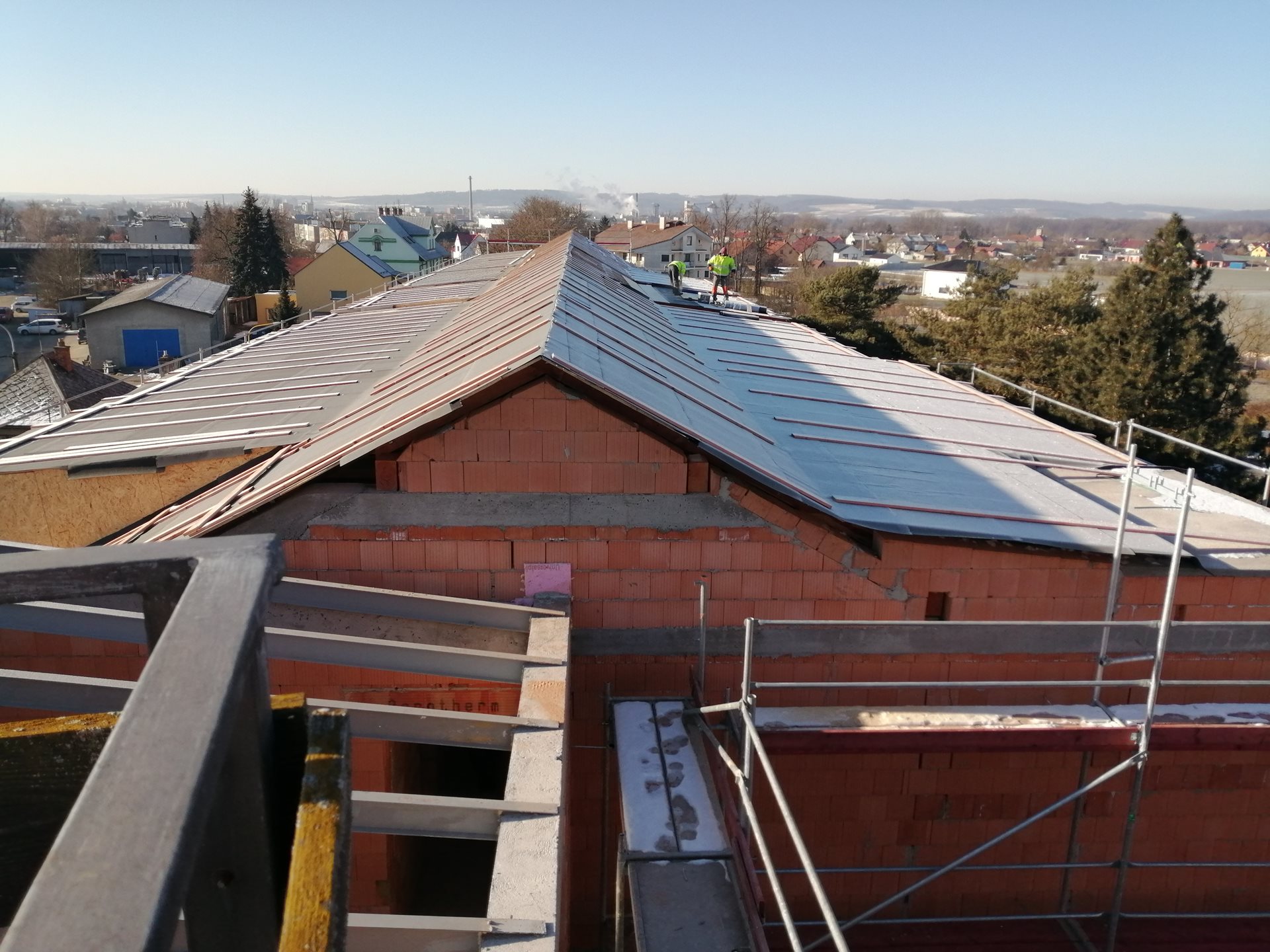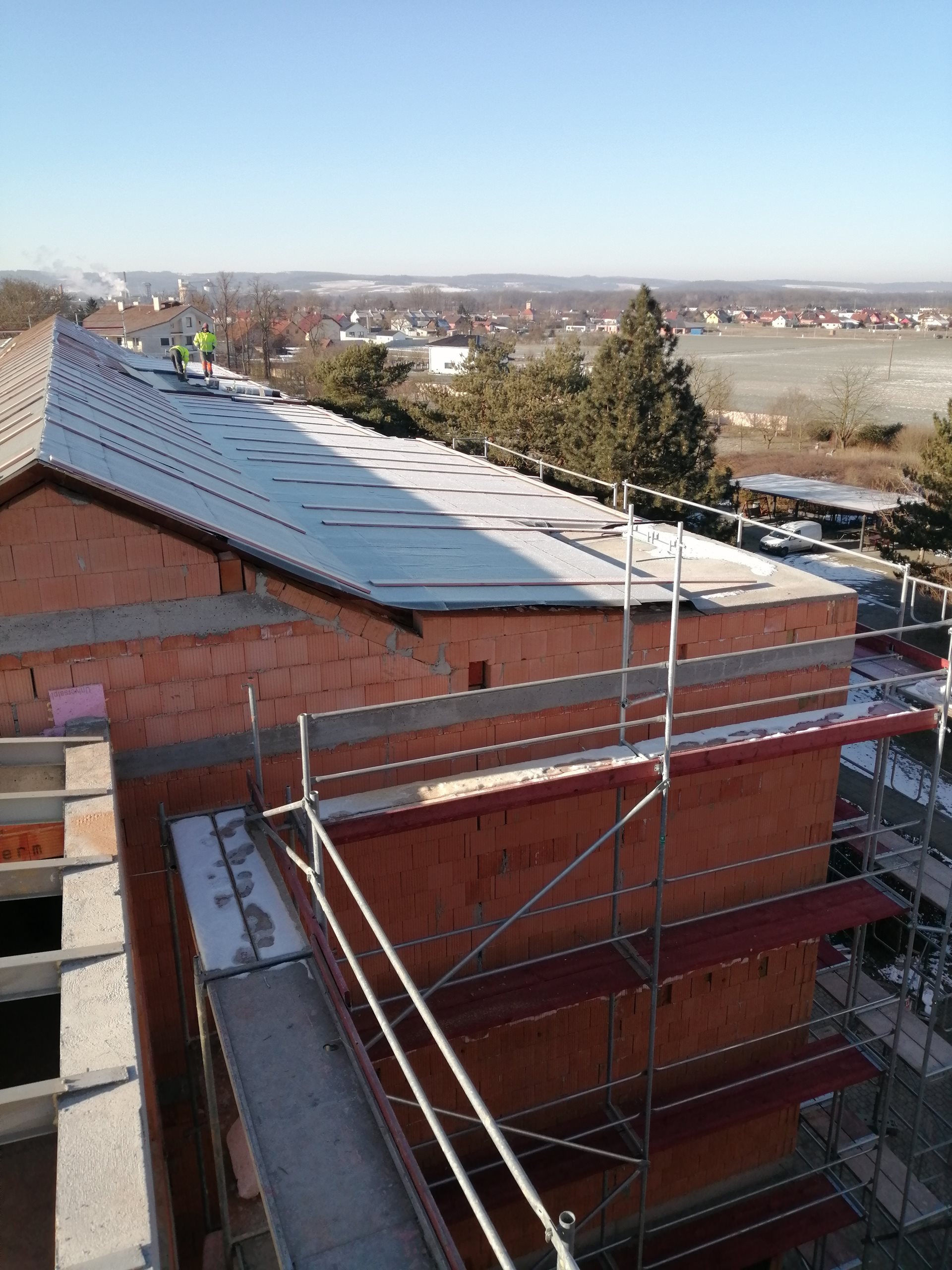 Po měsíci je opět vidět změna - už máme okna a dělá se střecha.