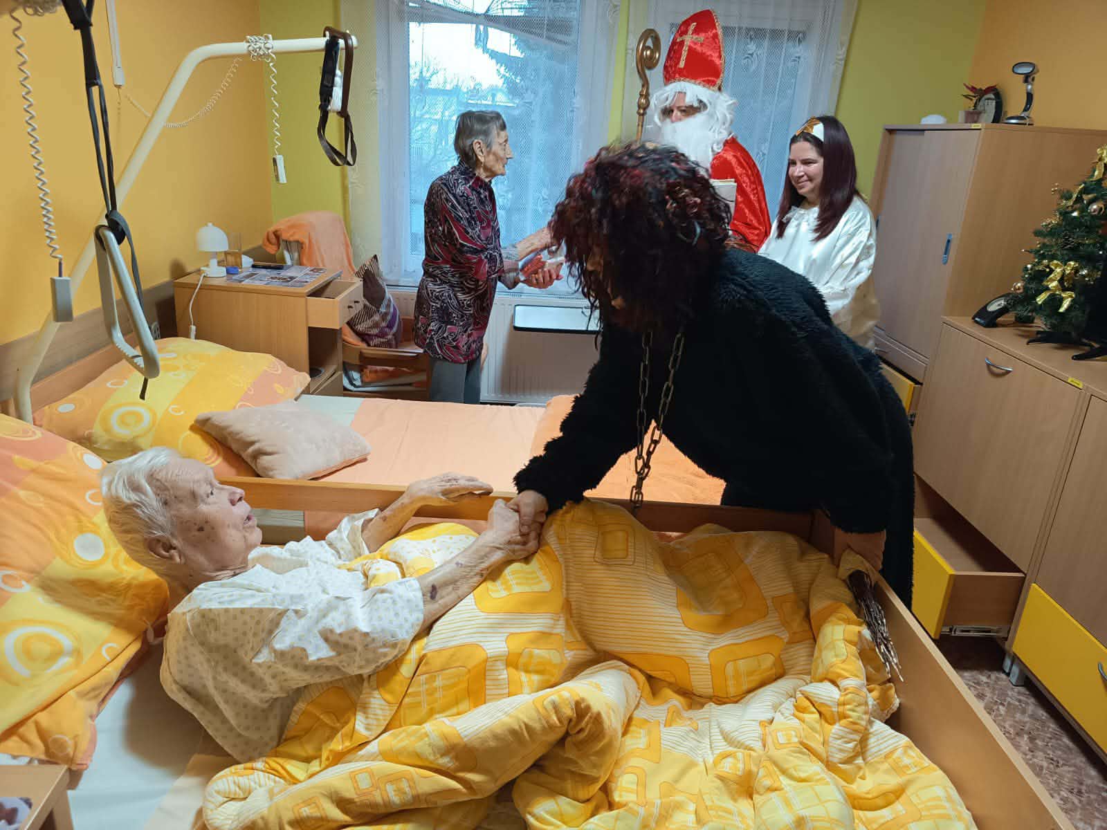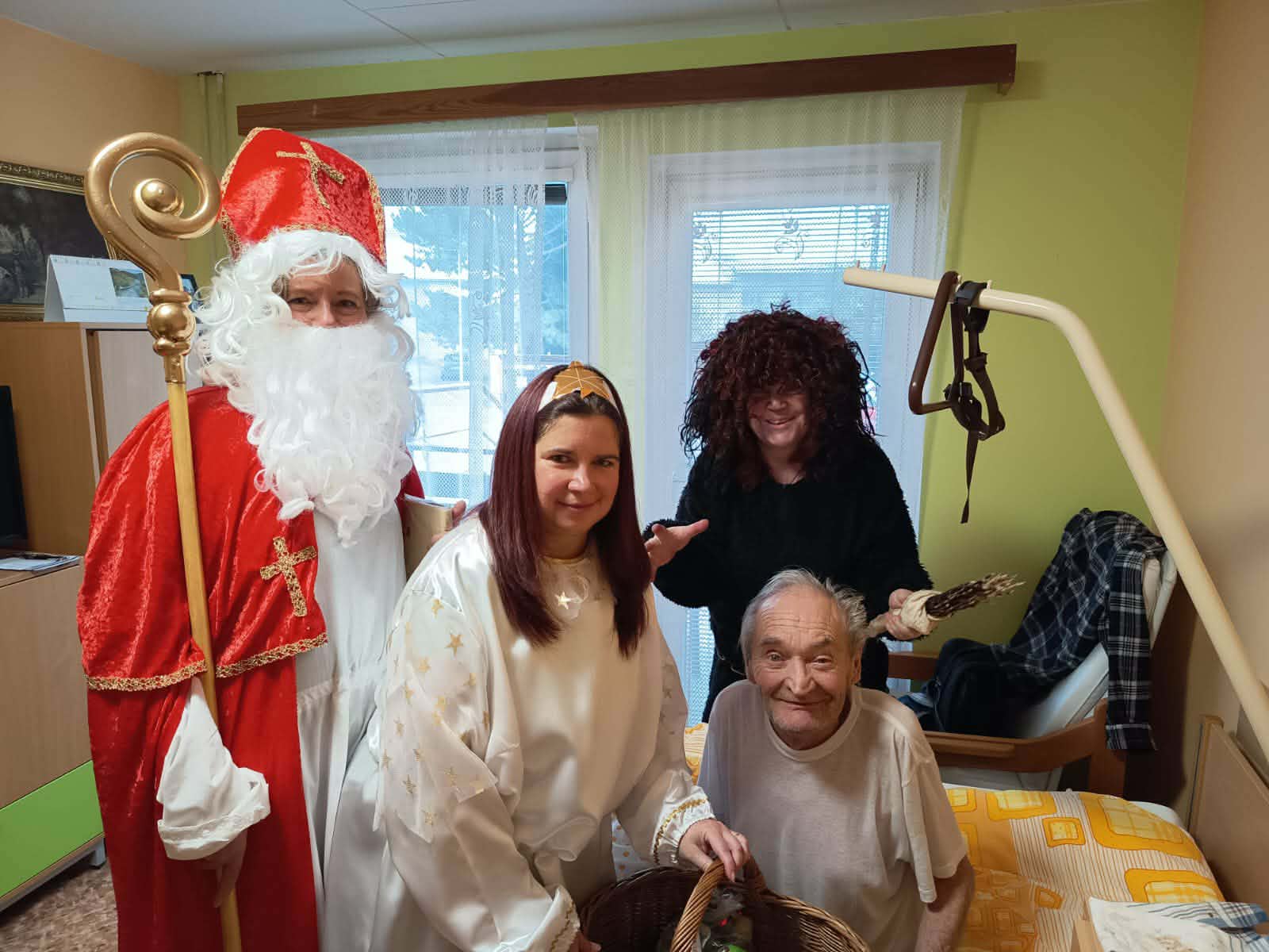 Do našeho domova zavítal Mikuláš, anděl i čert, kteří během dne prošli všechny pokoje v Července i v Litovli.