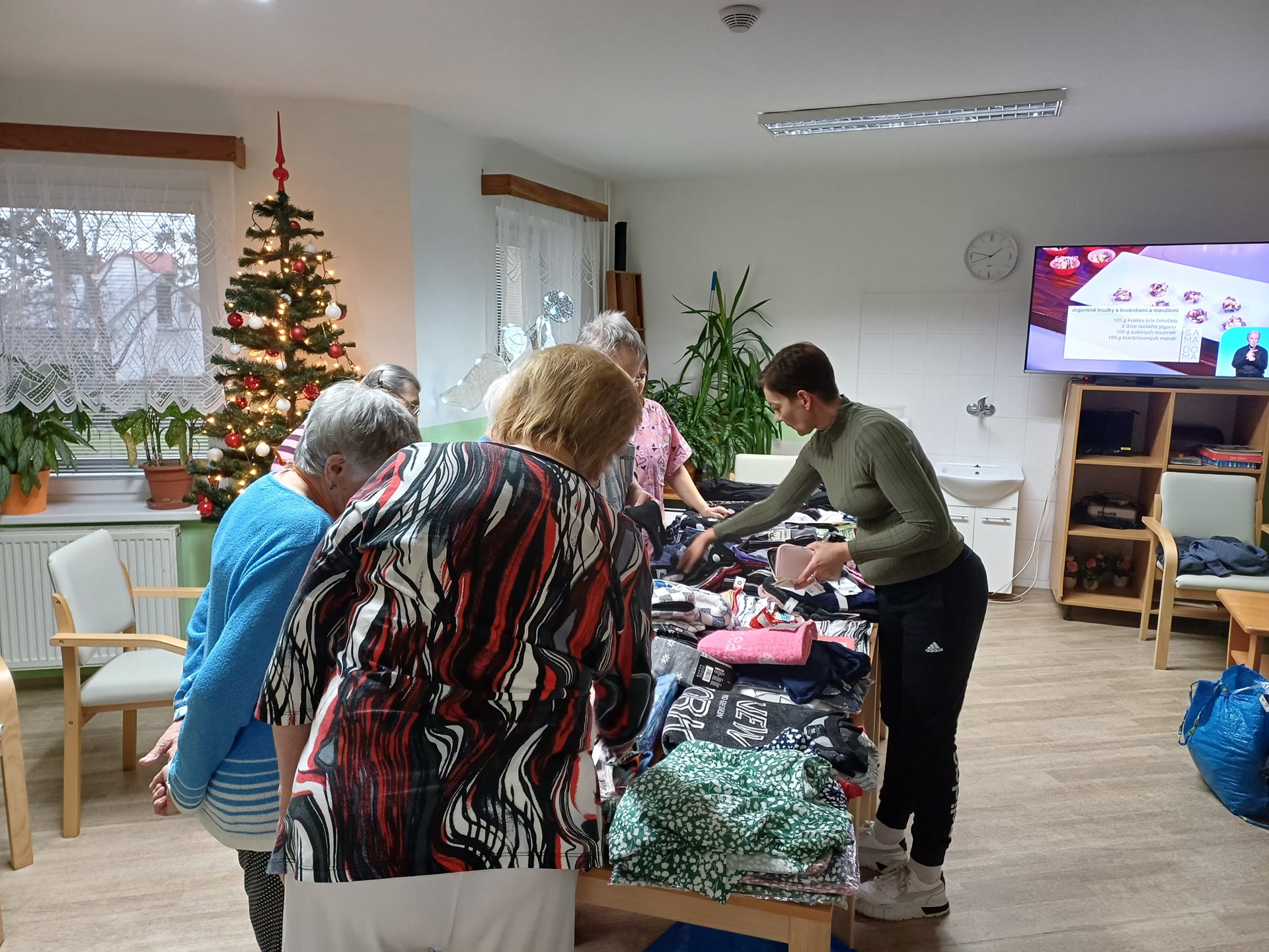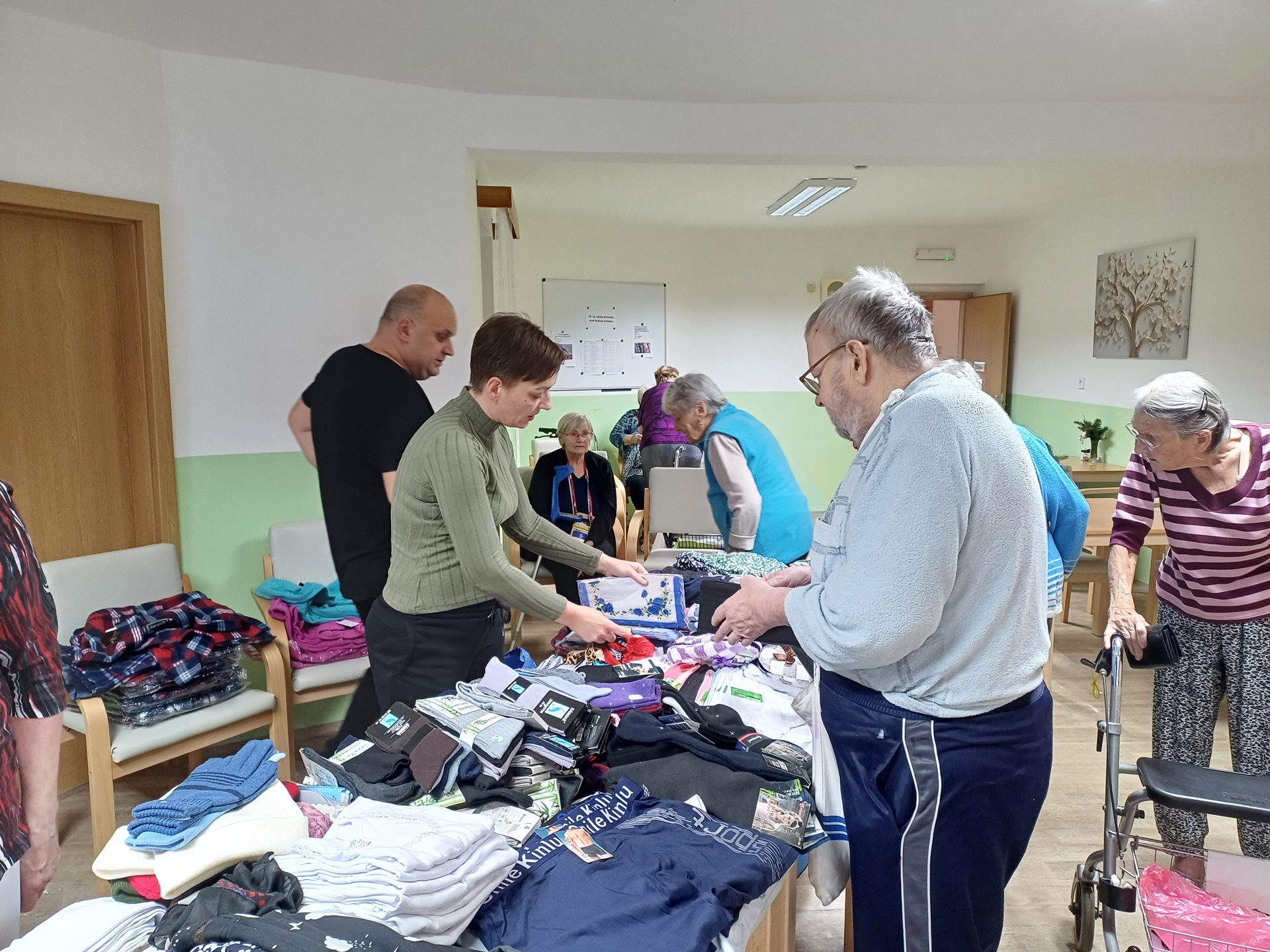 Návštěva mobilní prodejny- klienti si mohli nakoupit oblečení jako halenky, kalhoty apod.