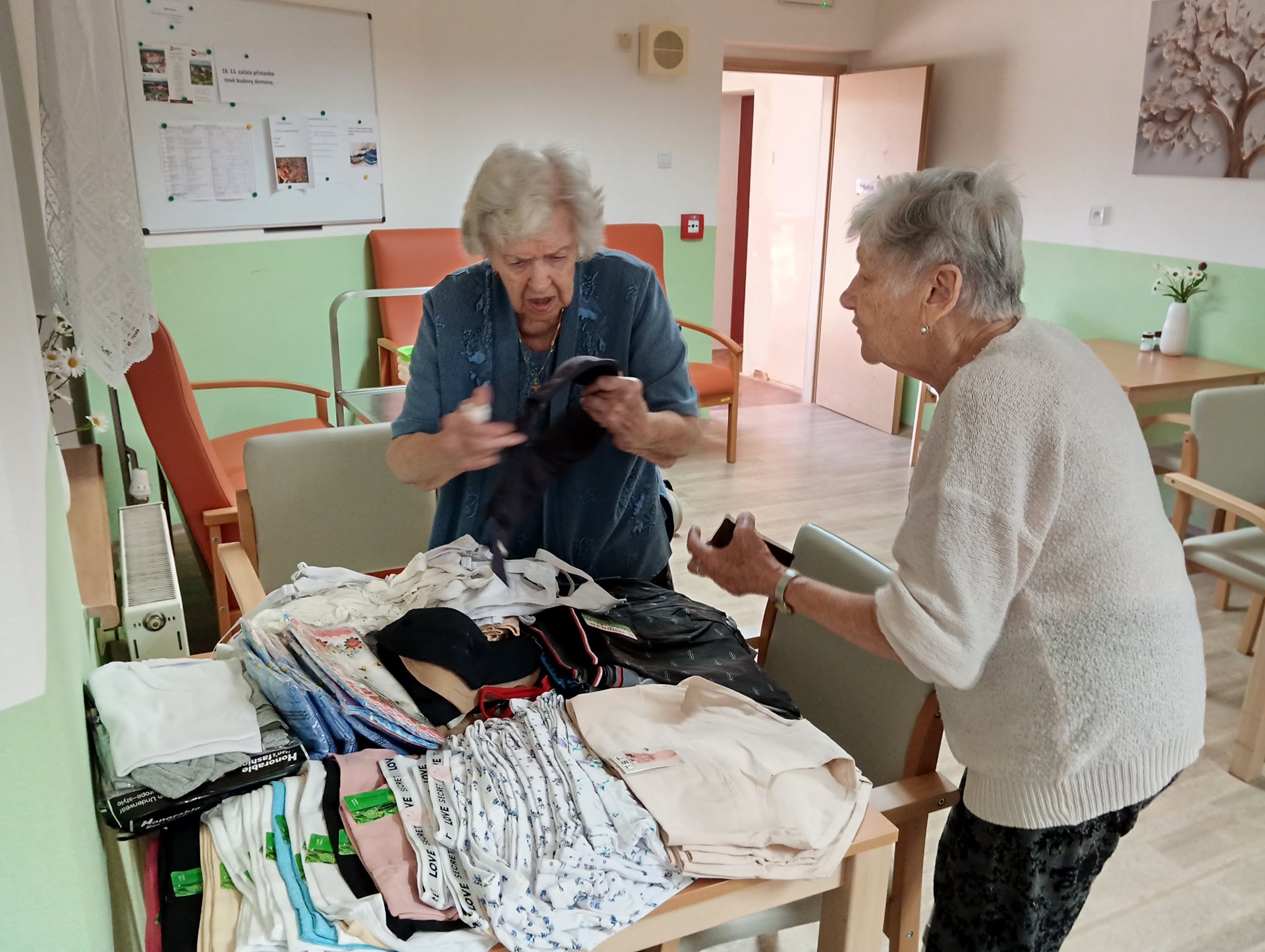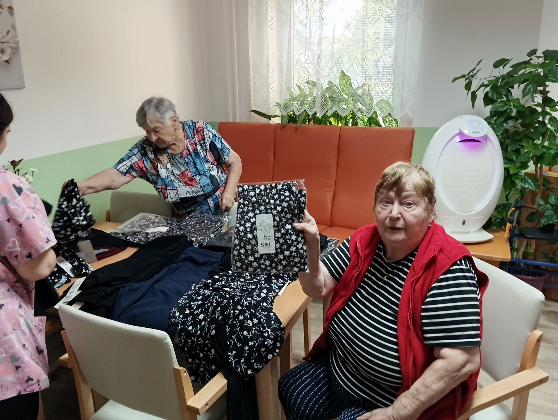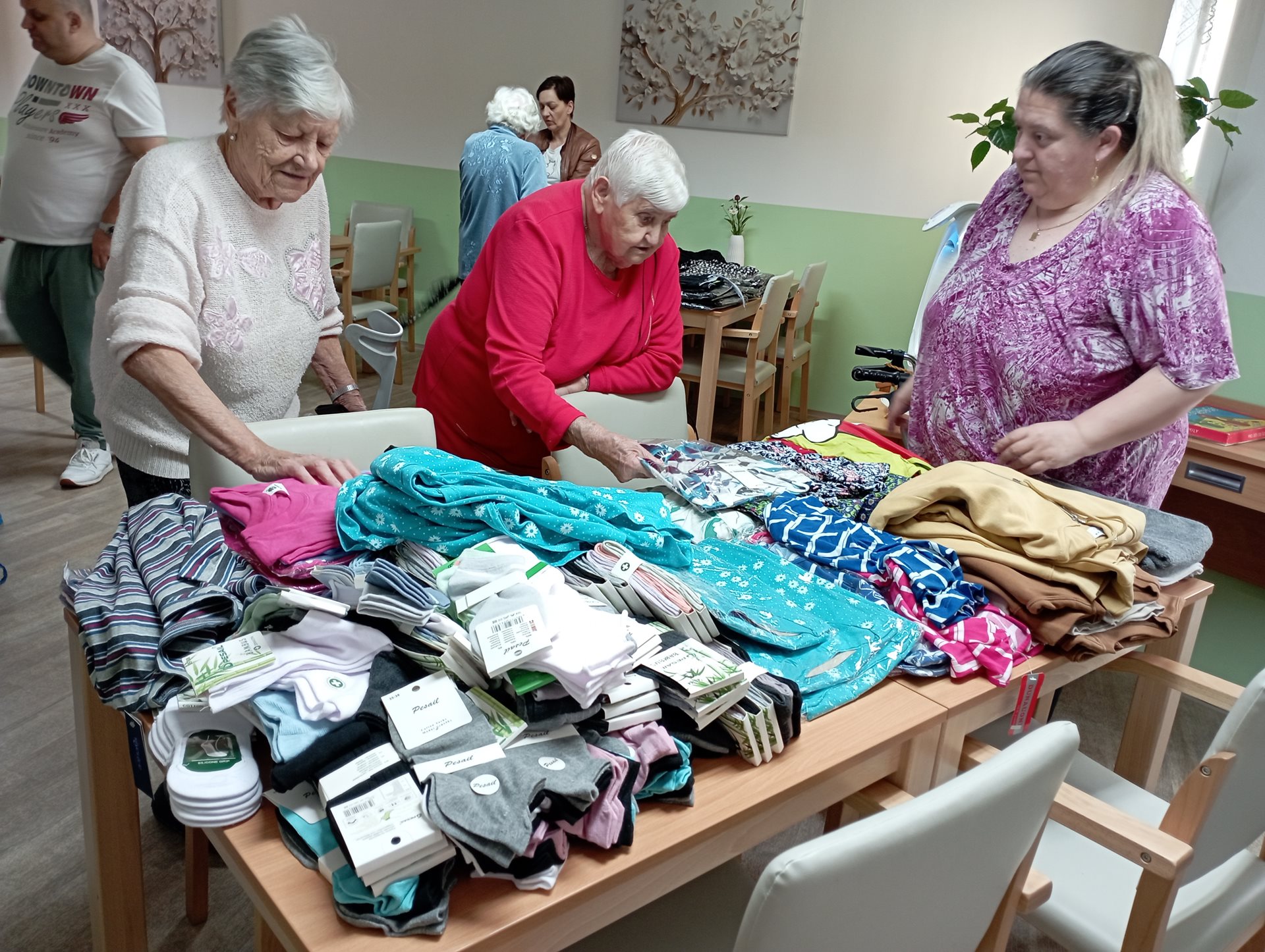 Dnes do našeho zařízení zavítala mobilní prodejna s oblečením, která nabídla klientkám i klientům možnost pohodlně si vybrat a zakoupit nové kousky oblečení přímo v areálu domova. Návštěva byla vítaným zpestřením dne a přinesla radost nejen těm, kteří si pořídili něco nového, ale i těm, kteří si celou akci užili jako příjemné společenské setkání.