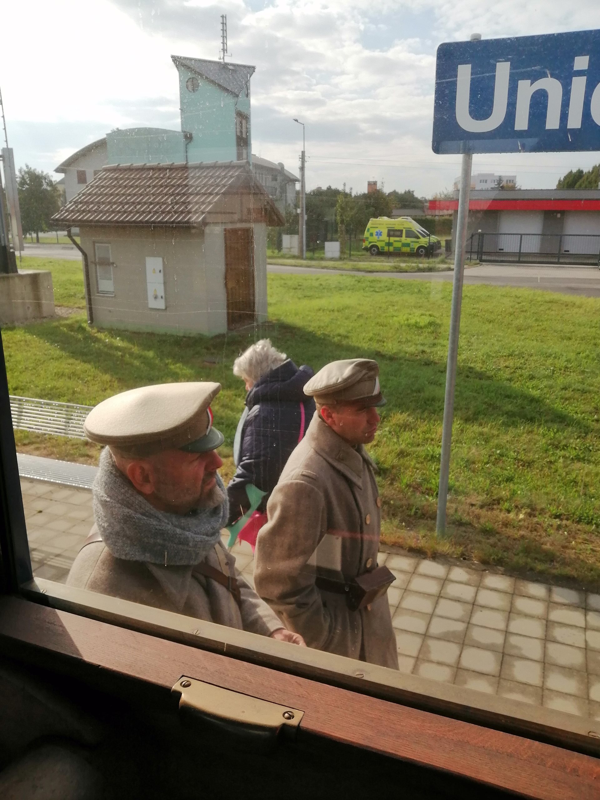 🍂 V autenticky vybavených vagónech se otevřelo okno do minulosti a společná fotografie 📸 s doprovodem v dobových uniformách se stala krásnou památkou na tento den.