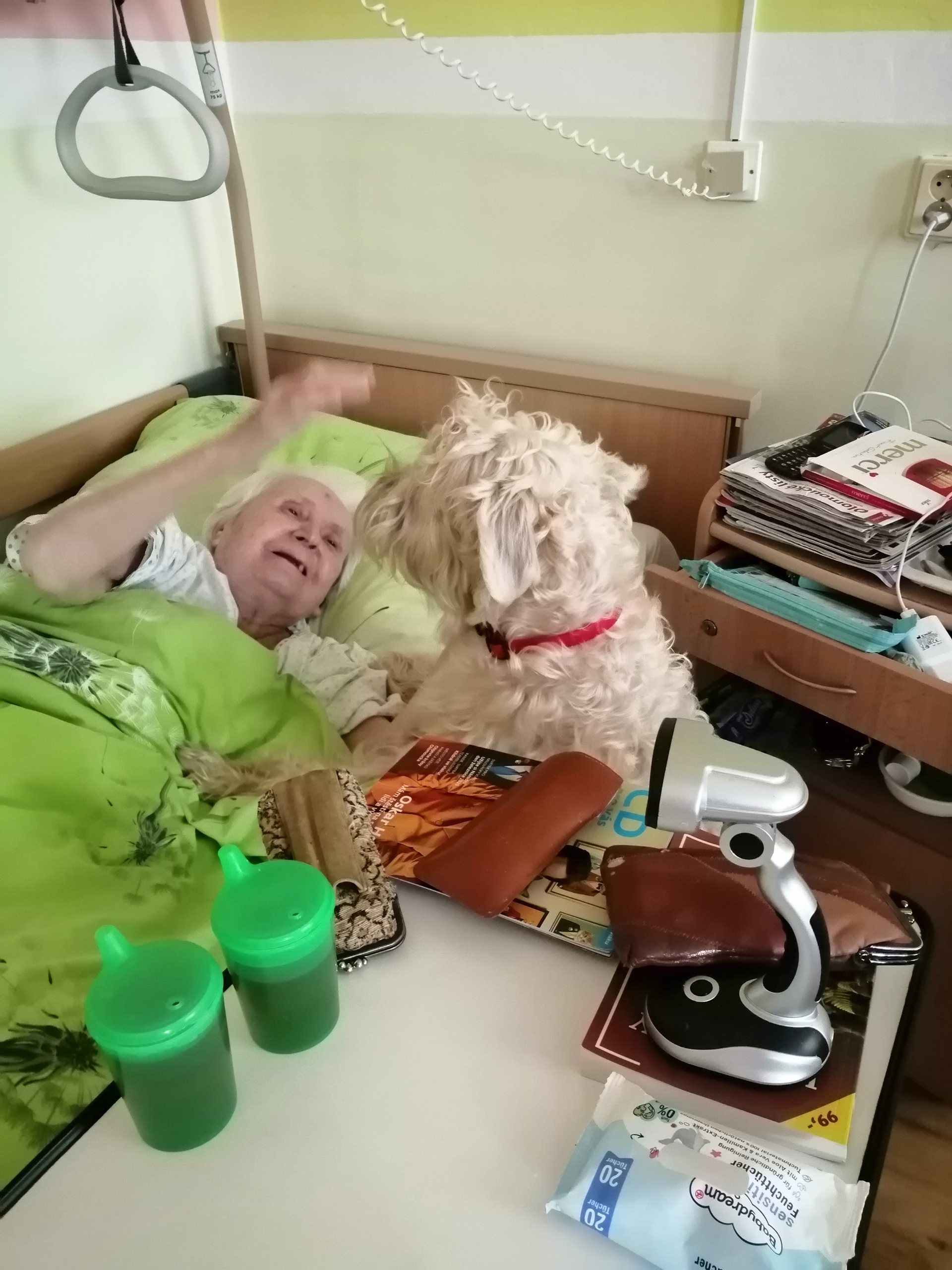 Pes i kocour, kteří ji provázejí, jsou u našich klientů vždy vítanými hosty. Kontakty se zvířaty přinášejí radost, podporují dobrou náladu a mají pozitivní vliv na psychickou pohodu seniorů.