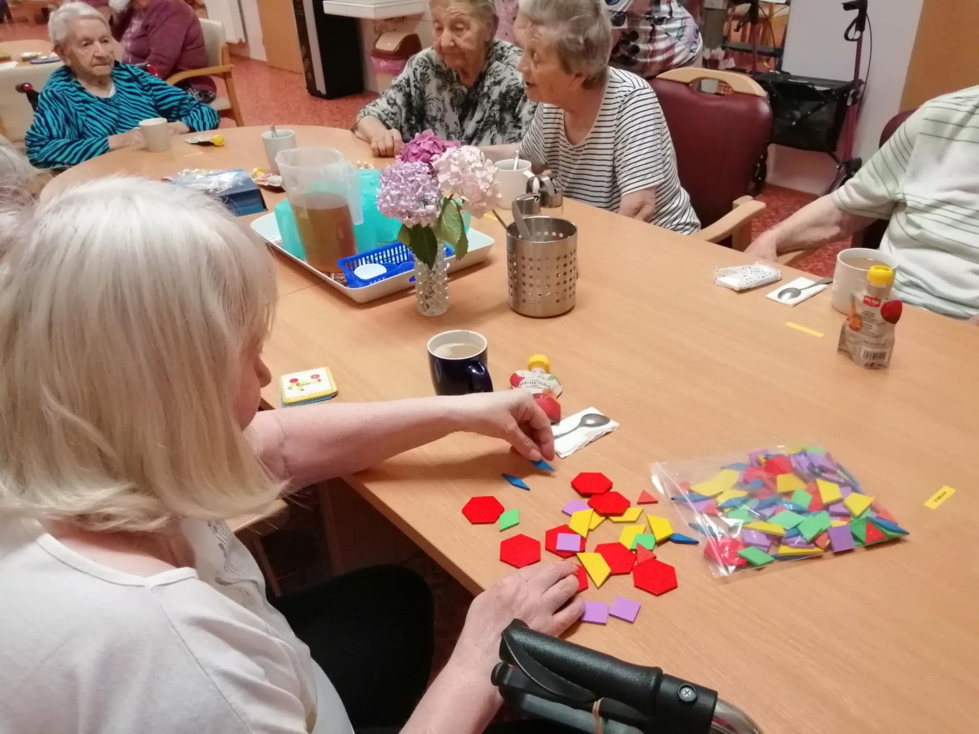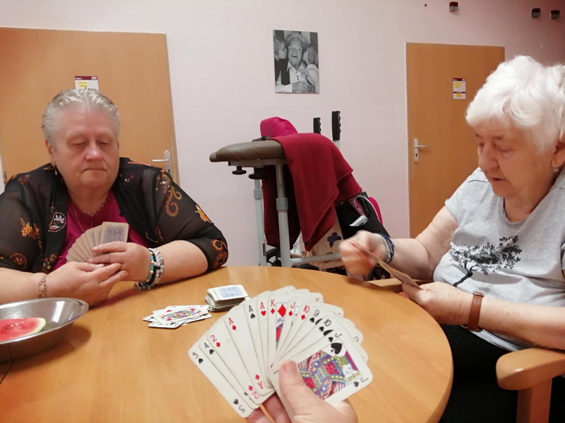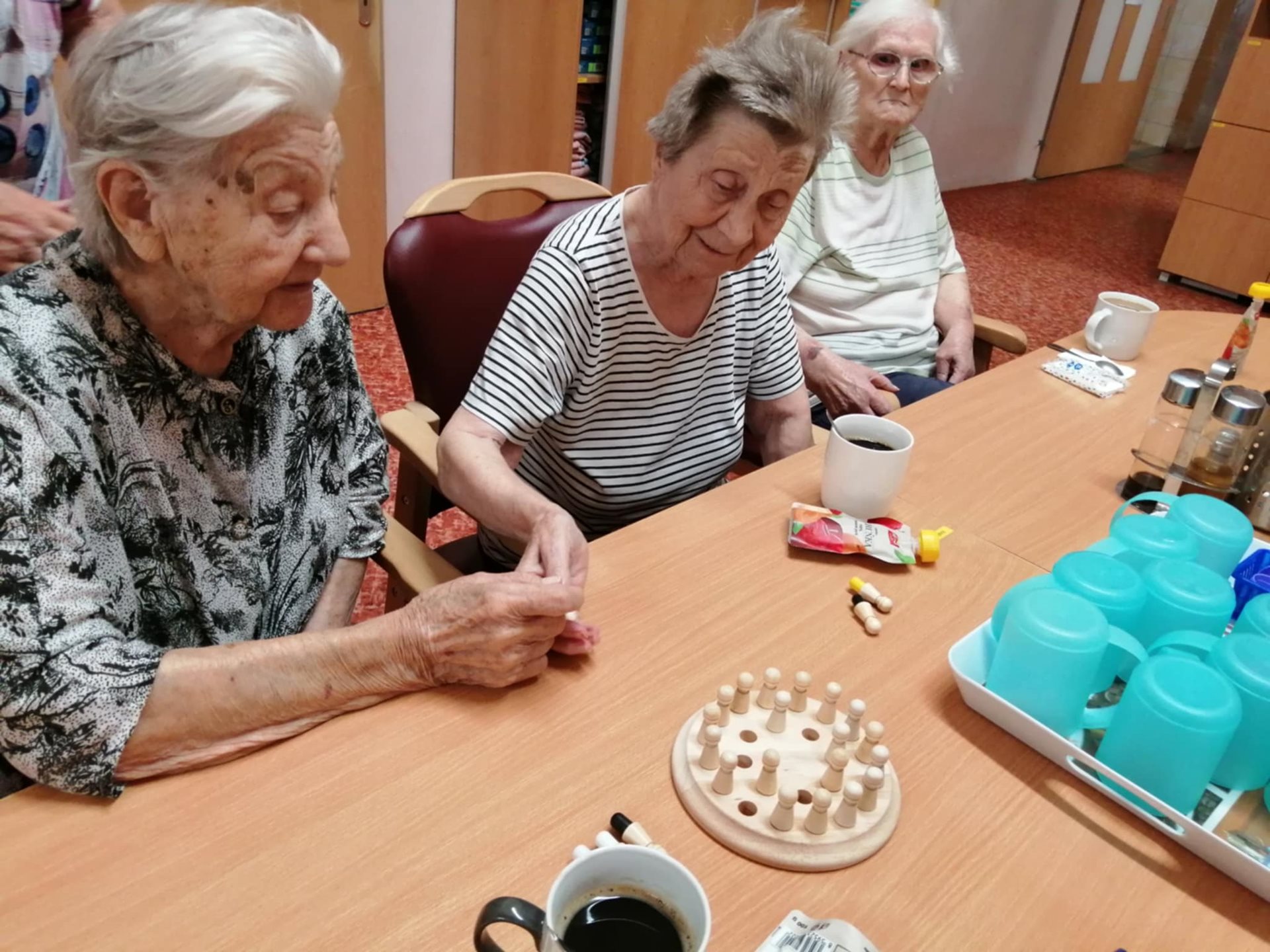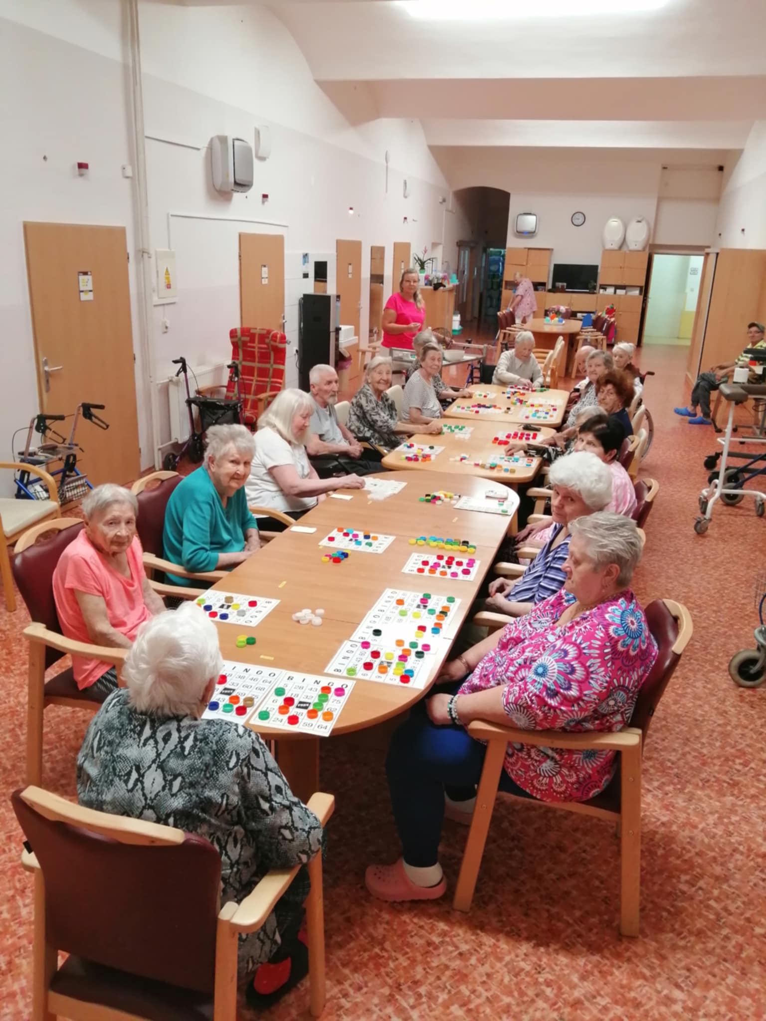Pravidelné odpolední posezení nám naše aktivizační Šárka zpestřuje společenskými hrami. Jsme spokojení, ať už jde o hlavolamy, karetní hry, Člověče, nezlob se, nebo naši oblíbenou hru Bingo.