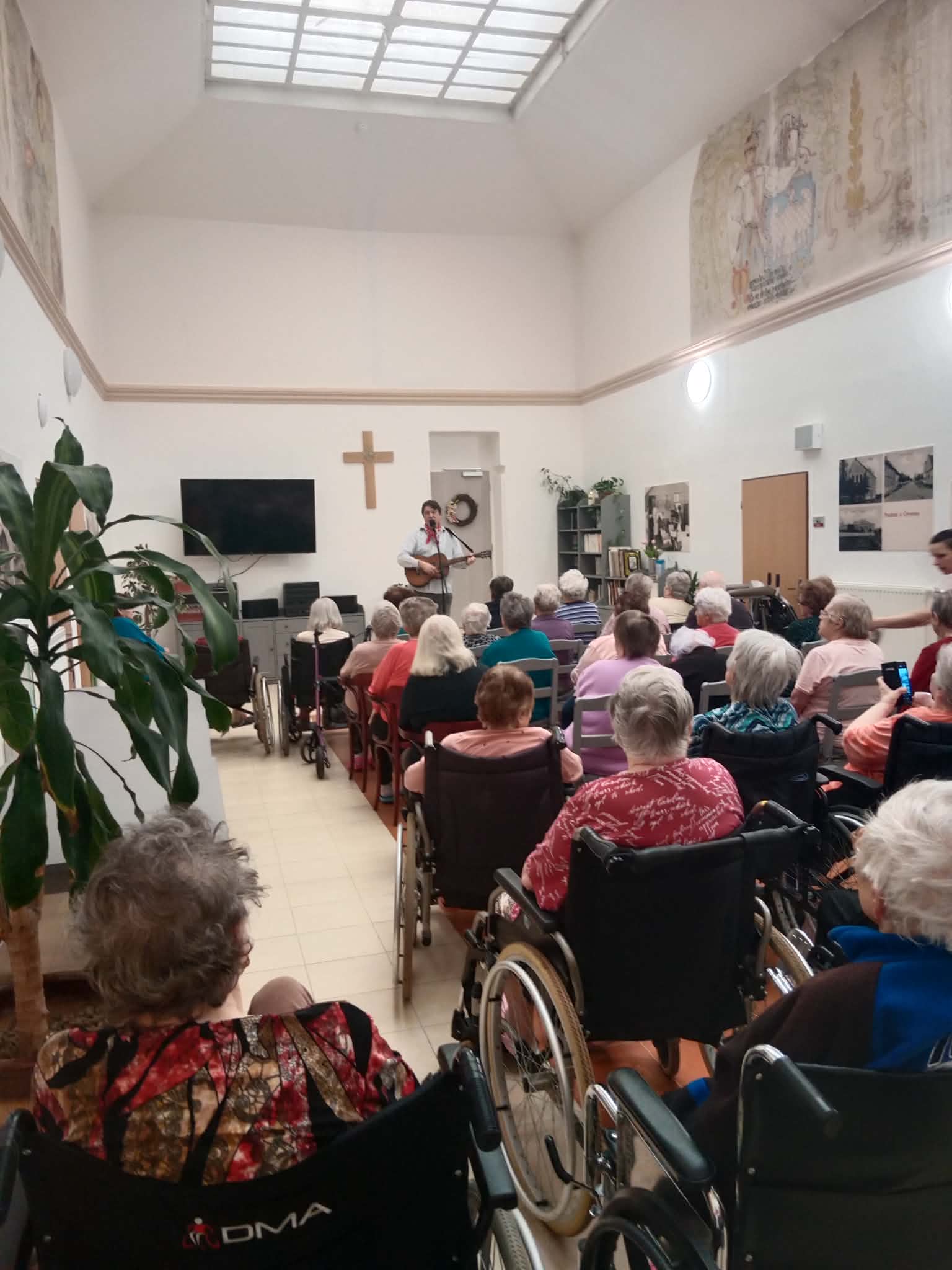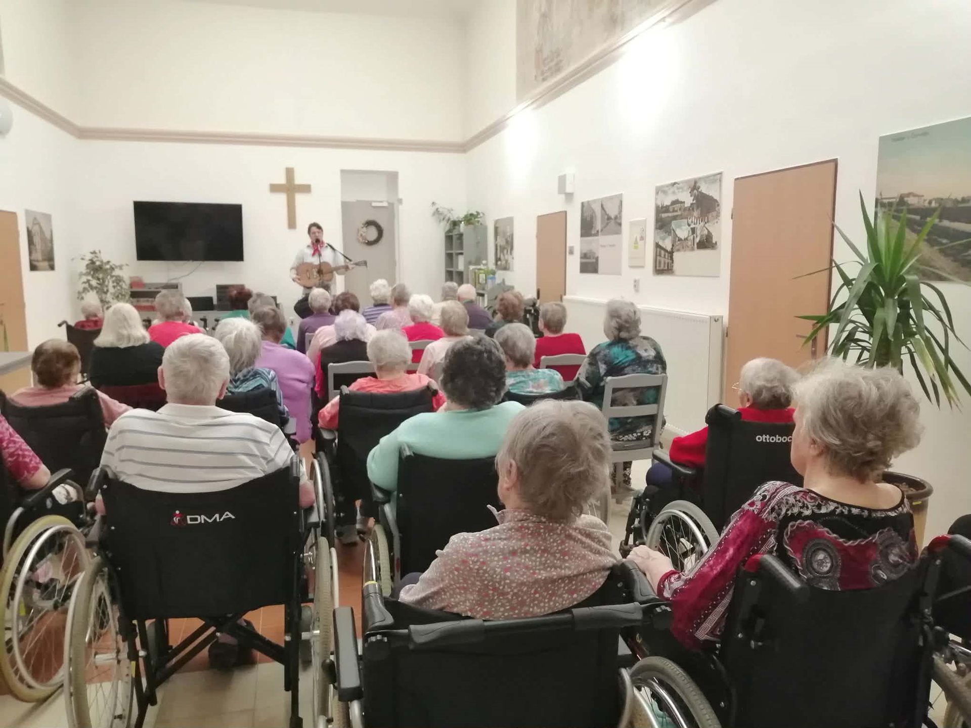 Hudba, zpěv i vyprávění doplněné řadou vtipů vykouzlily úsměvy na tvářích všech přítomných. Celé setkání se neslo v duchu dobré nálady a společného sdílení radosti.