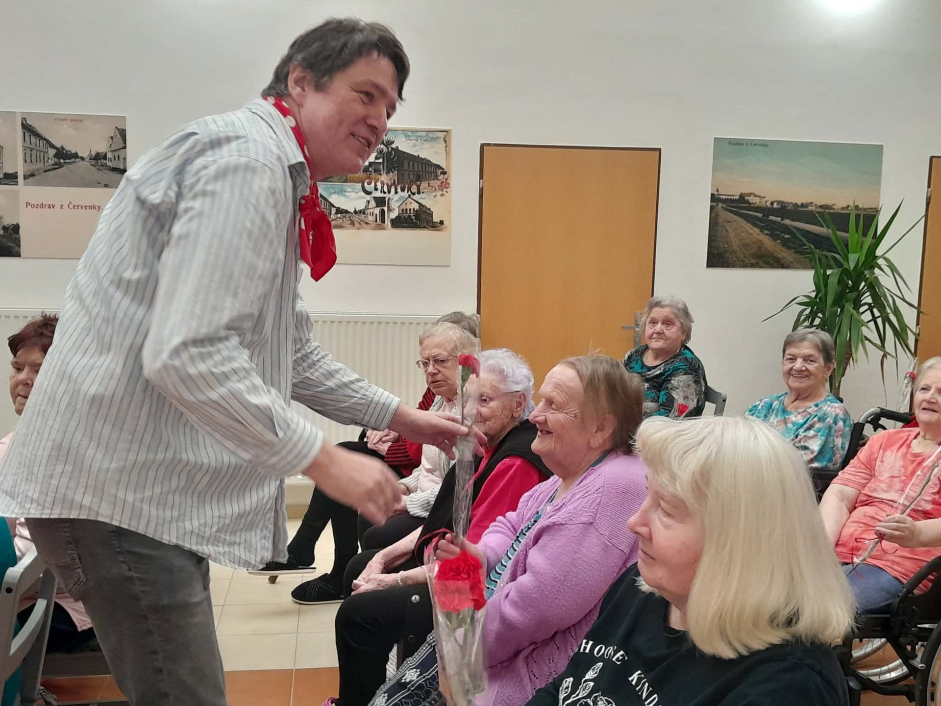 Mezinárodní den žen jsme v našem domově oslavili ve velmi příjemné atmosféře. Milým hostem byl pan Pecháček, bývalý člen skupiny Šlapeto, který svým vystoupením potěšil klientky i klienty.