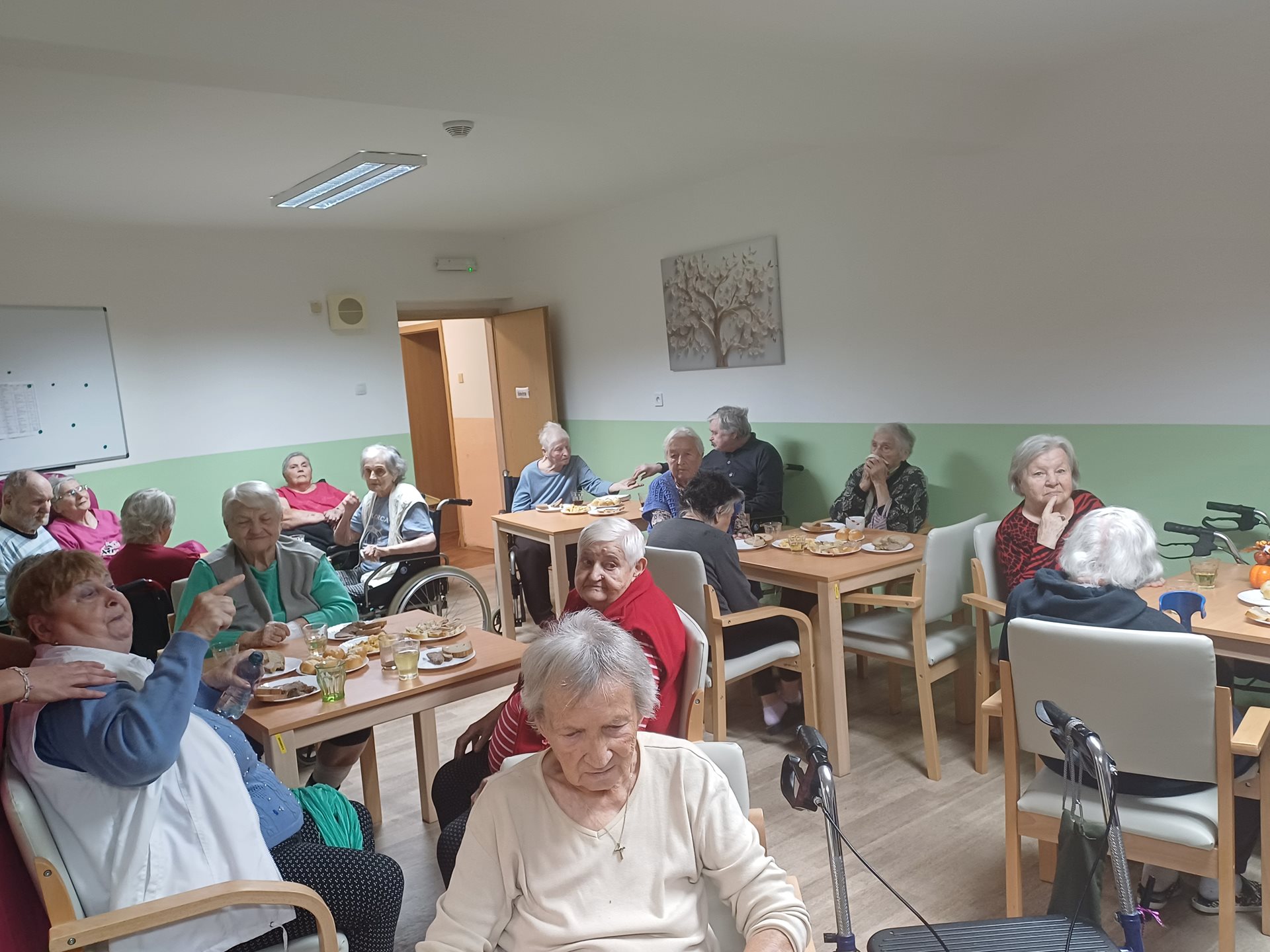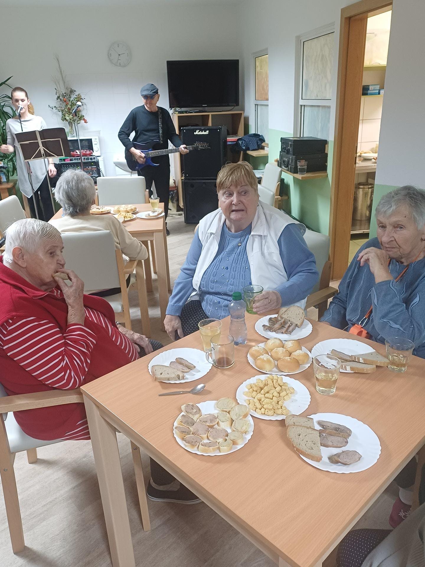 Oslavili jsme svátek svatého Martina, který nám bohužel první sníh nepřinesl. S klienty jsme si udělali pěkné odpoledne s bohatým občerstvením a dobrým vínem. Přijel nám zahrát a zazpívat pan Fiala, který nám klienty rozezpíval a roztančil.