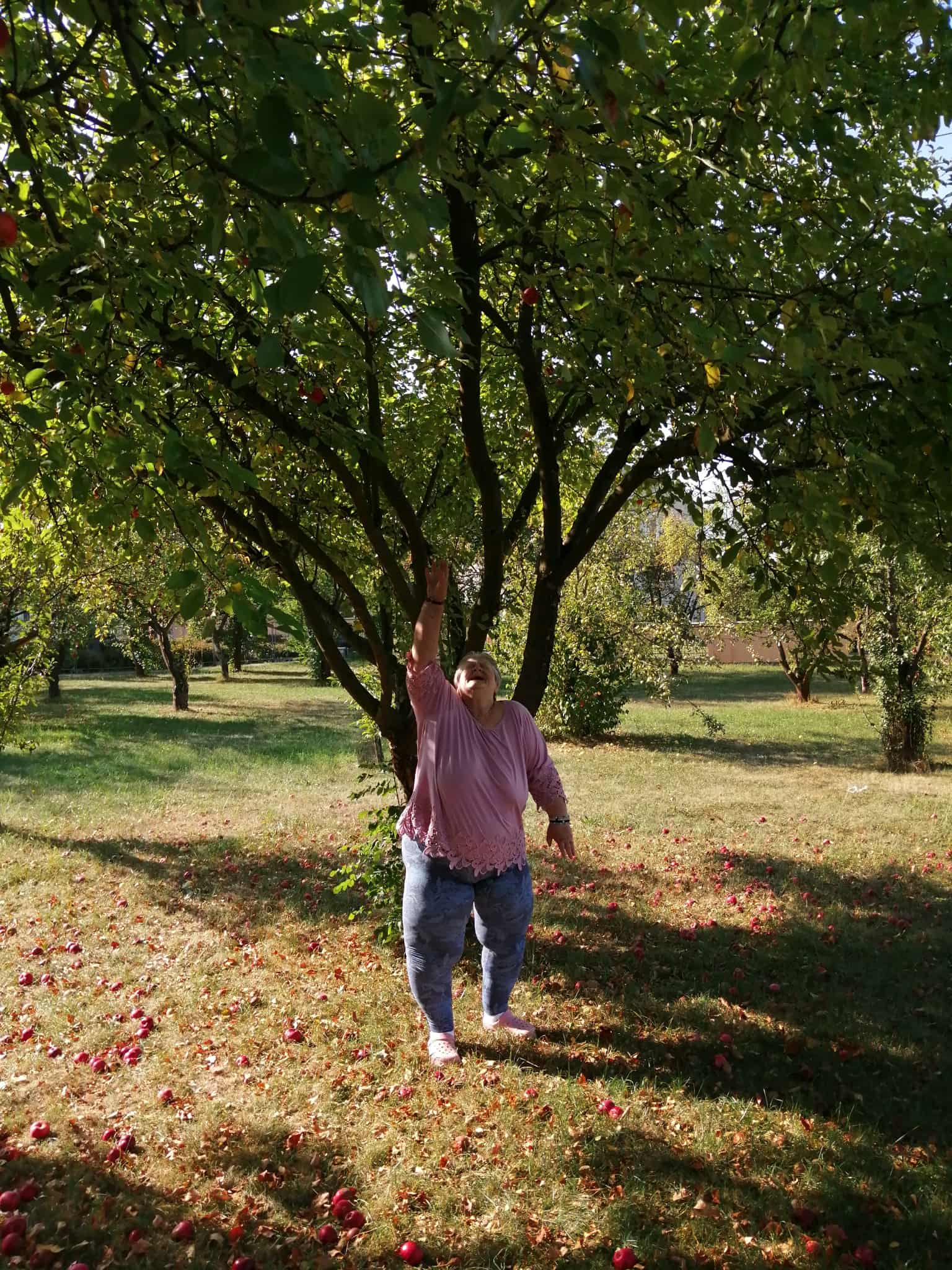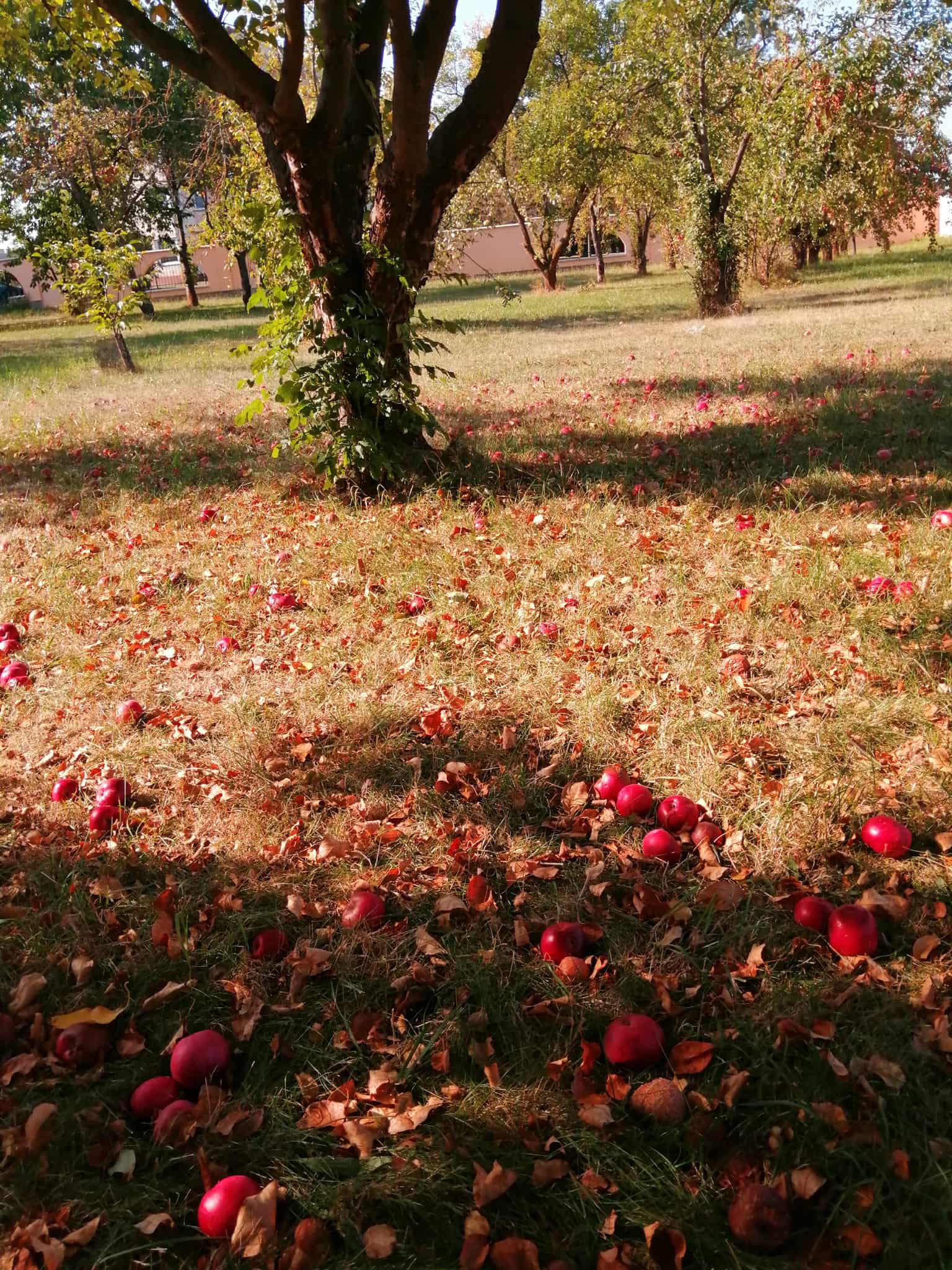 Krásné podzimní počasí jsme využili k procházce po zahradě, kde nás potěšila bohatá úroda jablek.