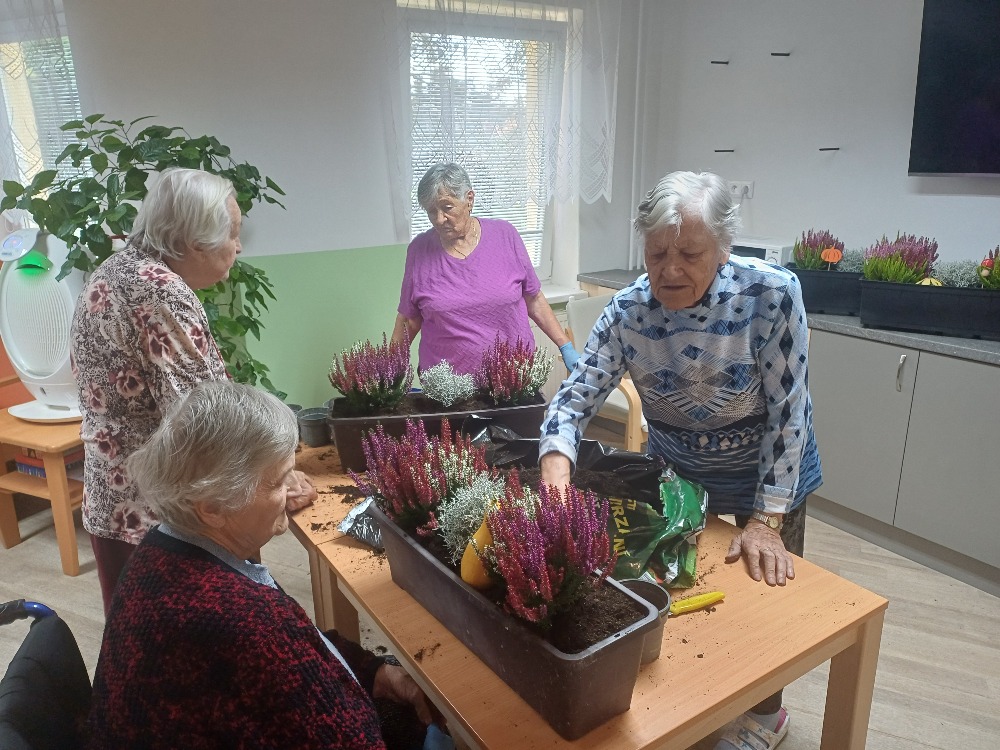 V úterý a ve středu jsme s klientkami pilně pracovaly na výzdobě domova : sázely vřesy, vyráběly věnce a my zaměstnanci jsme se oblékly do podzimních barev, to naši klienti vždy uvítají s velkou radostí.