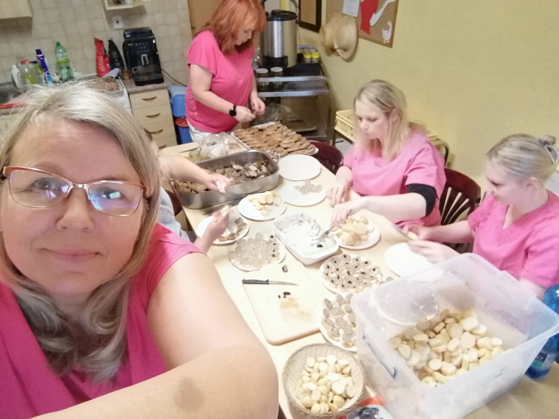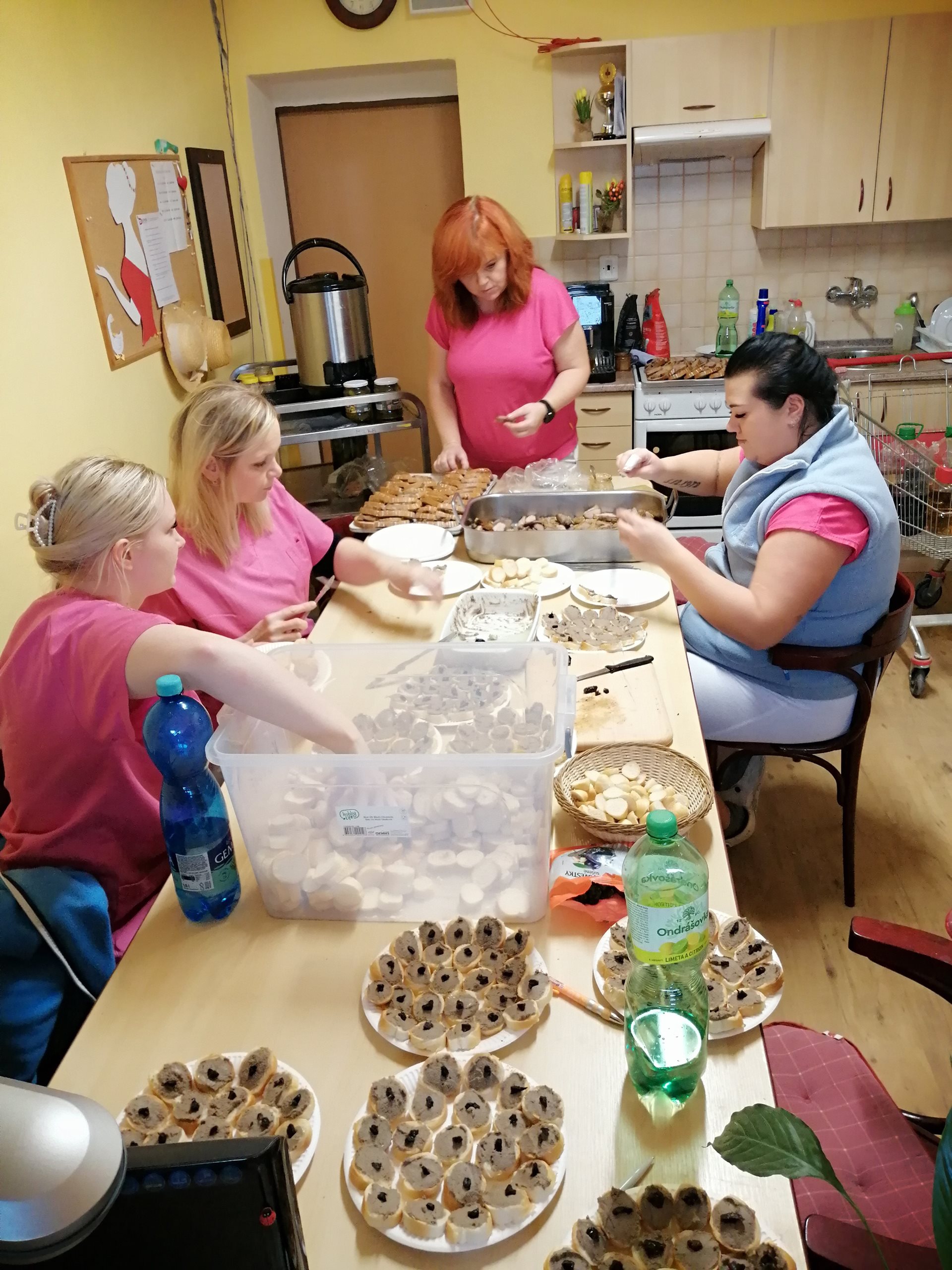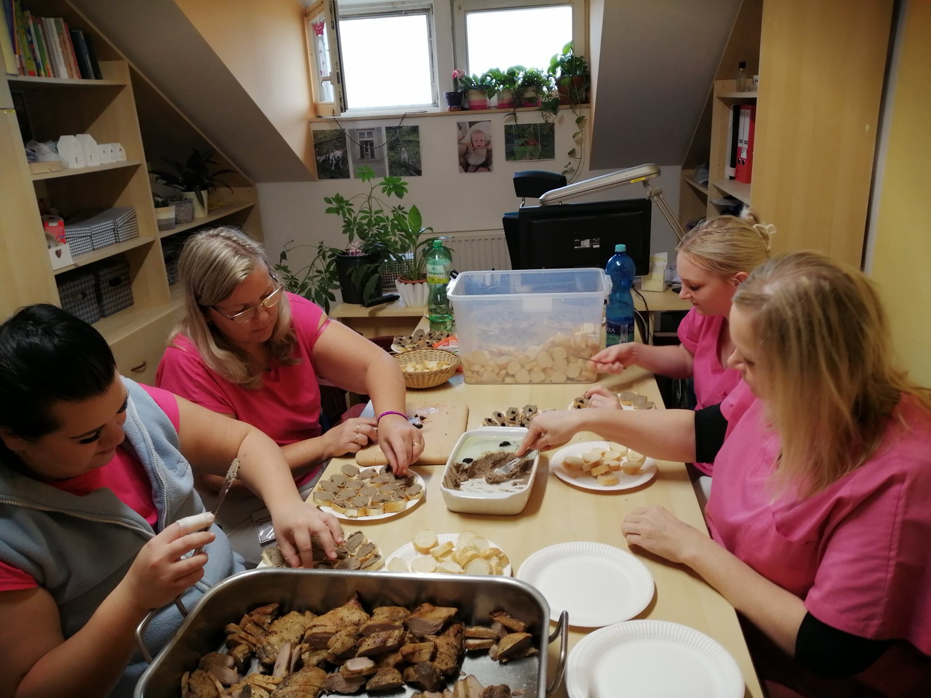 Kuchyně připravila domácí paštiku a pečená husí prsíčka, děvčata z oddělení mazala chuťovky a chystala vše, aby bylo odpoledne co nejpříjemnější. Všichni se těšíme na společnou oslavu plnou dobrého jídla a pohody.