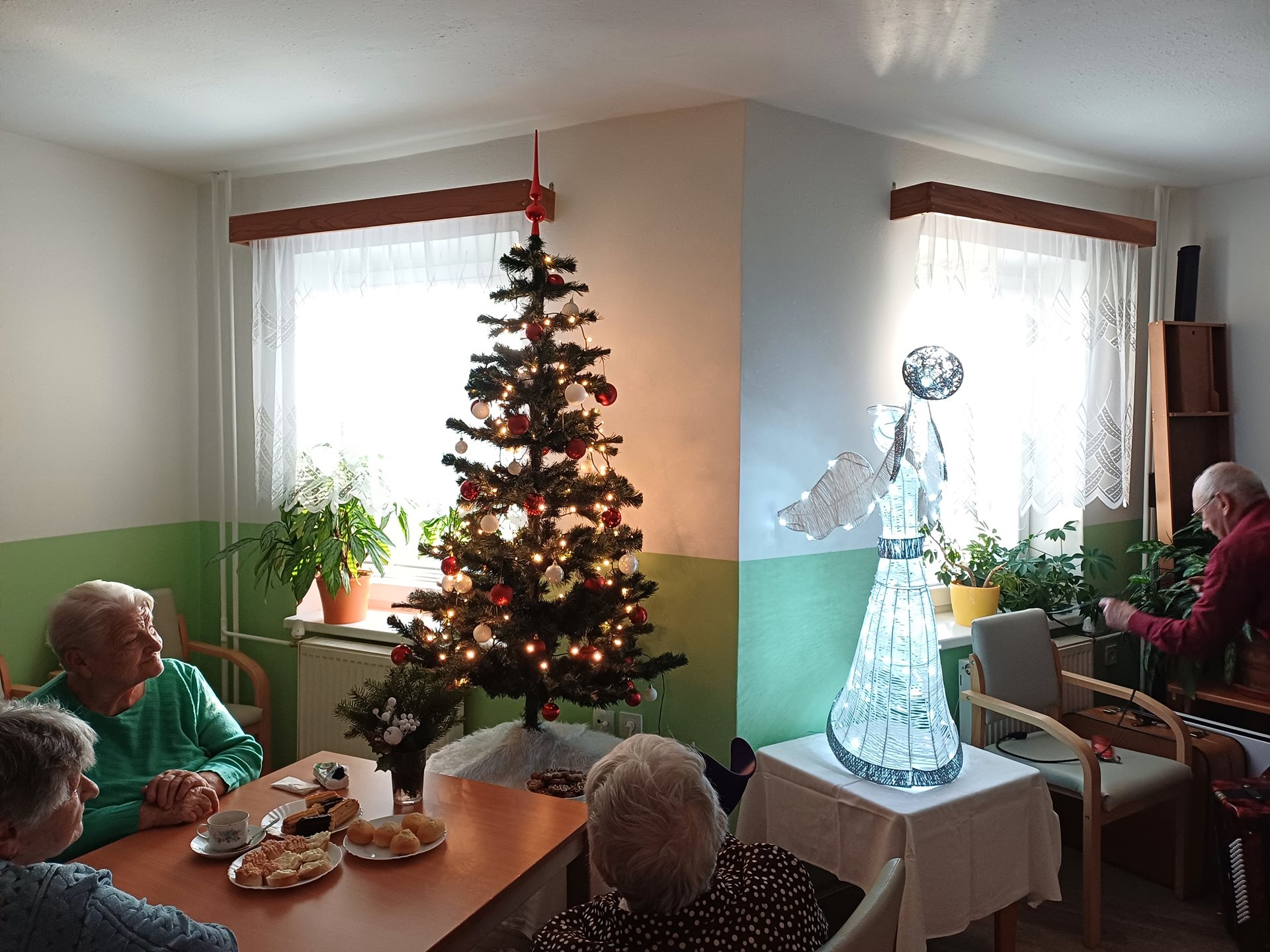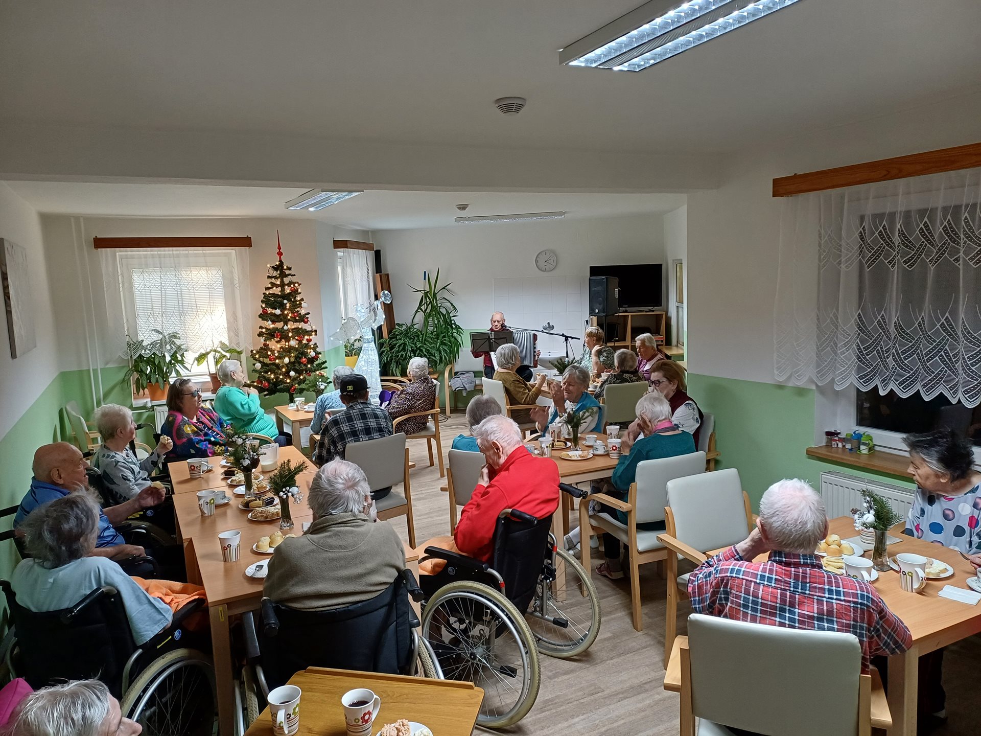 Dnes jsme si rozsvítili náš vánoční stromeček. Nechybělo občerstvení, vánoční punč a přijel nám zazpívat a zahrát pan Pajer z Jeseníku.