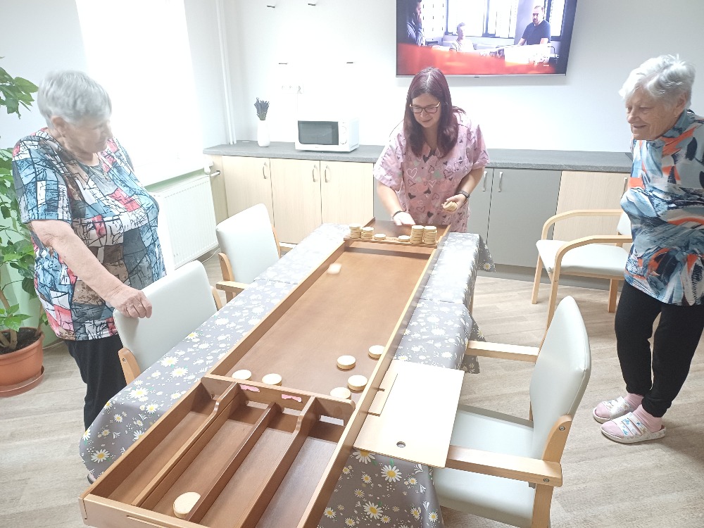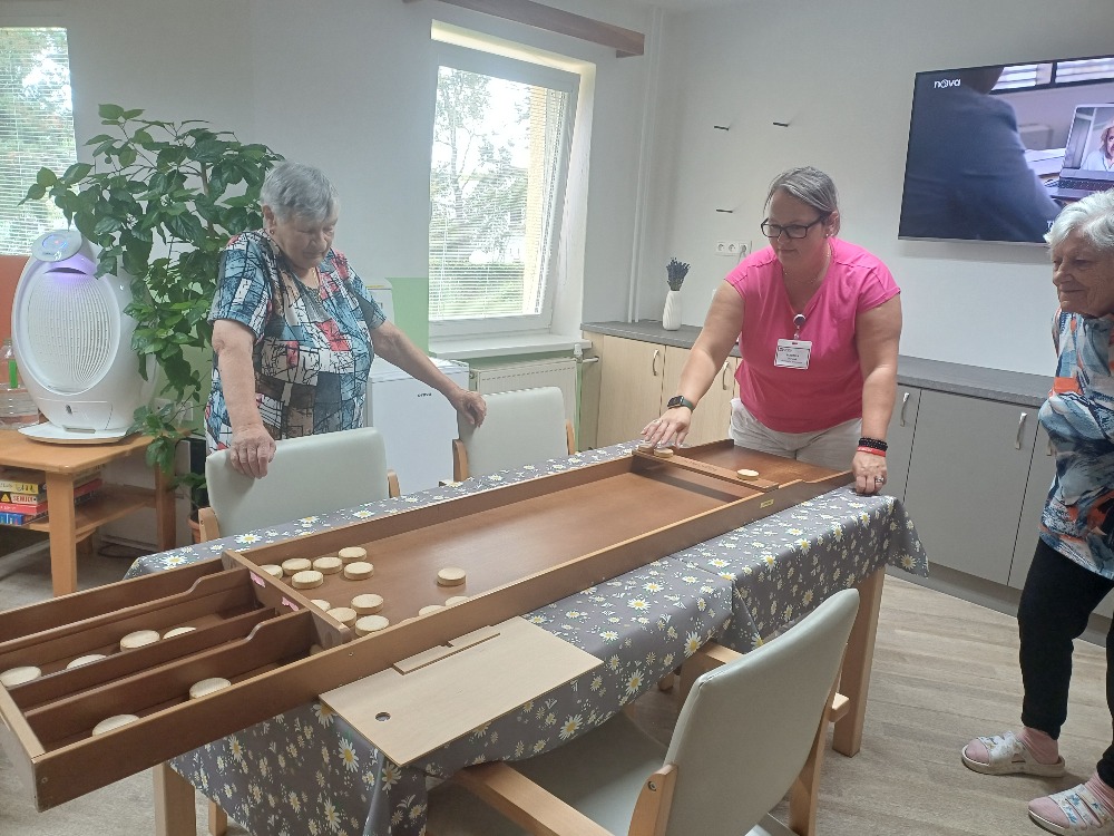 Dnes dopoledne jsme si na jídelně zahrály Holandsky biliard a Člověče, nezlob se. Všechny jsme si to moc užily.