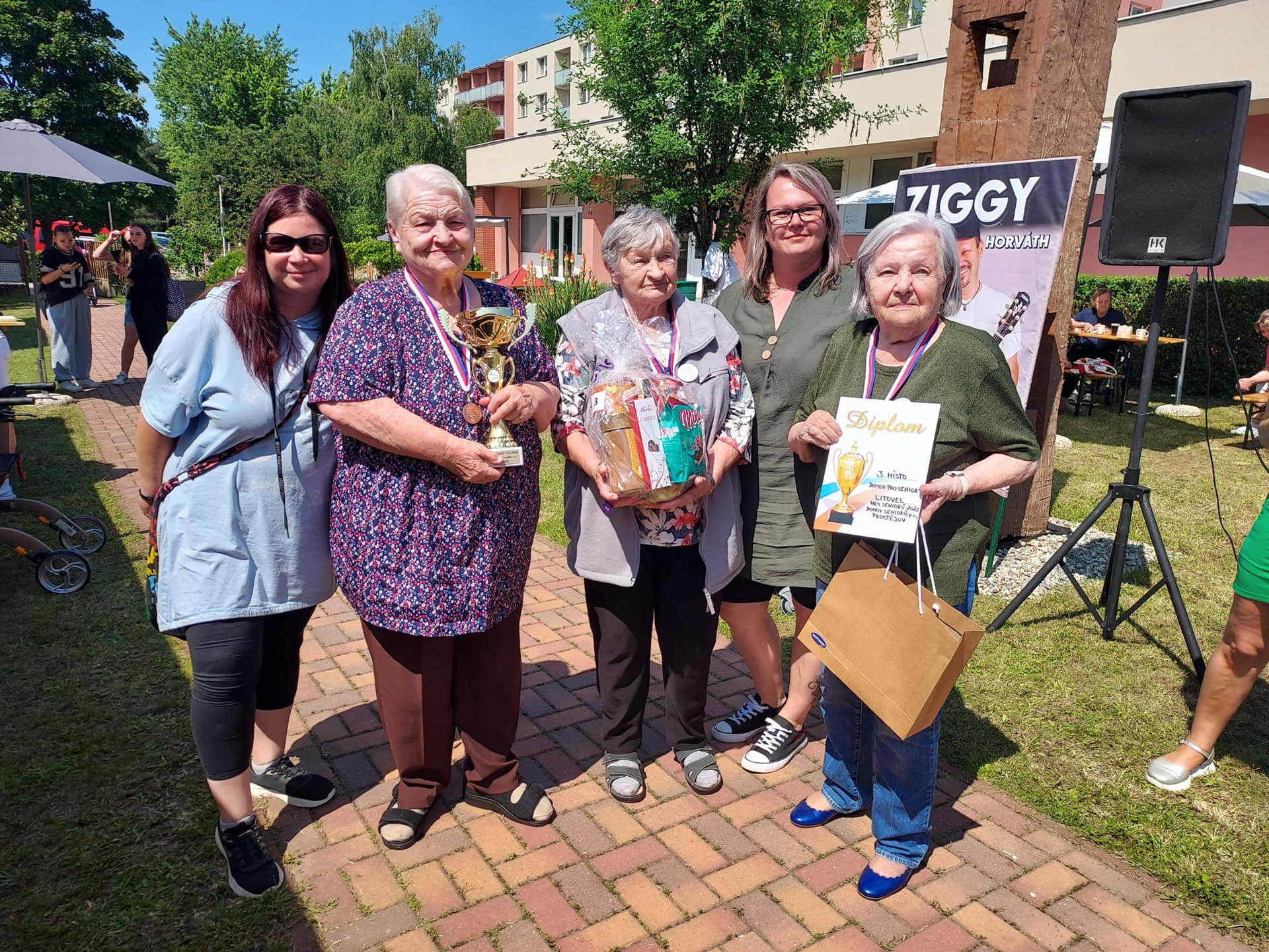 Dnes jsme měli možnost zúčastnit se sportovních her pořádaných v Domově seniorů v Prostějově. Naše klientky se s nadšením zapojily do soutěžních disciplín a s velkým nasazením reprezentovaly náš domov v Litovli. Díky své aktivitě, týmové spolupráci a radosti ze hry se jim podařilo vybojovat krásné 3. místo. Celý den probíhal v přátelské atmosféře, plné smíchu, povzbuzování a pozitivní energie. Klientky si akci velmi užily, odjížděly spokojené, obohacené o nové zážitky a s mnoha příjemnými dojmy.