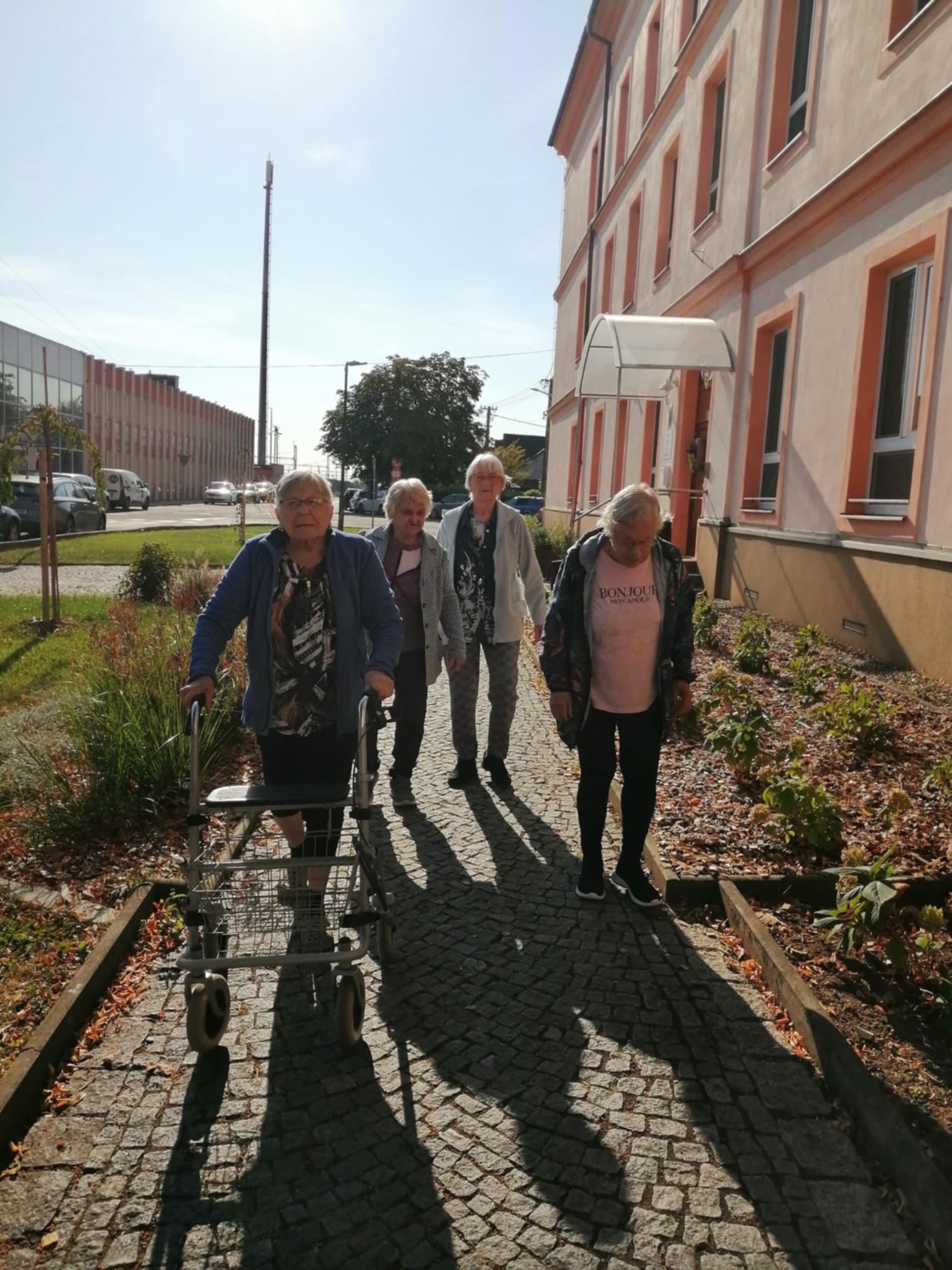 Krásné počasí nás vylákalo na procházku po okolí. Naše klientky si vycházku užily, zvládly ji s úsměvem a s hrdostí nad svým výkonem. Cestou nás potěšilo i malé občerstvení – zralé trnky přímo ze stromu.