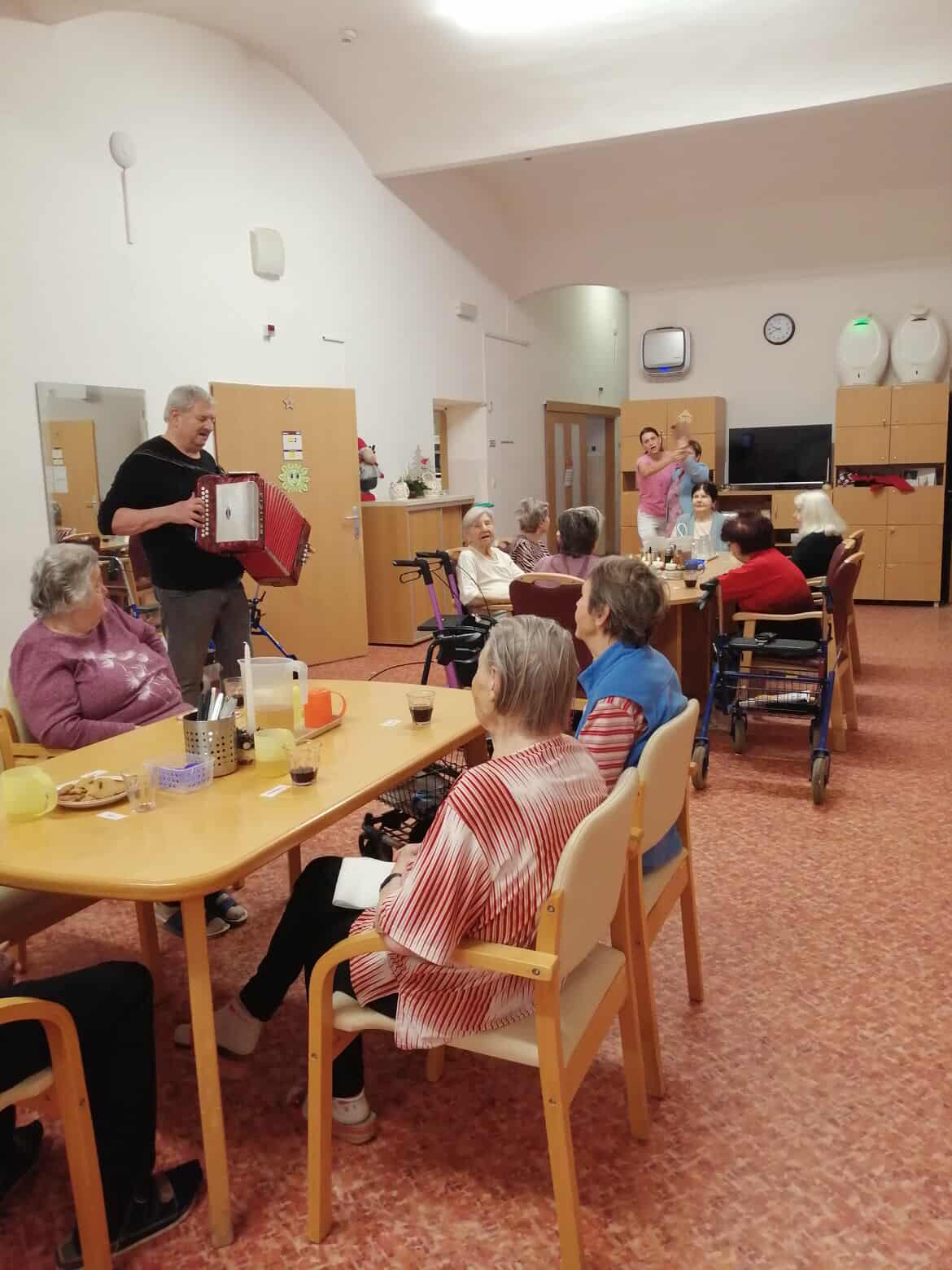 Celým dopolednem se nesla vánoční pohoda, úsměvy a spokojená atmosféra. Společně jsme si zazpívali známé písničky a nechybělo ani malé taneční veselí. Srdečně děkujeme panu Frantíkovi za krásné a milé setkání, které všem vykouzlilo úsměv na tváři.